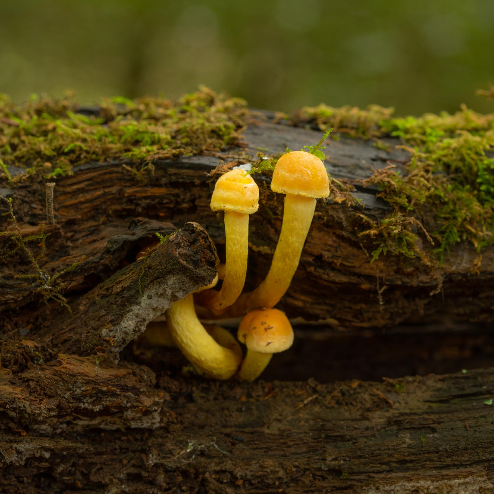 When the ground isn’t producing the shrooms needed at this time of year, I look to the moss growing on tree trunks. You can often find very small mushrooms there, perhaps bonnets (mycena) or galerinas. The moss holds on to the rainfall for longer, meaning fungi, some of which are parasitic on moss, can prosper. Let’s call them… mosshrooms!