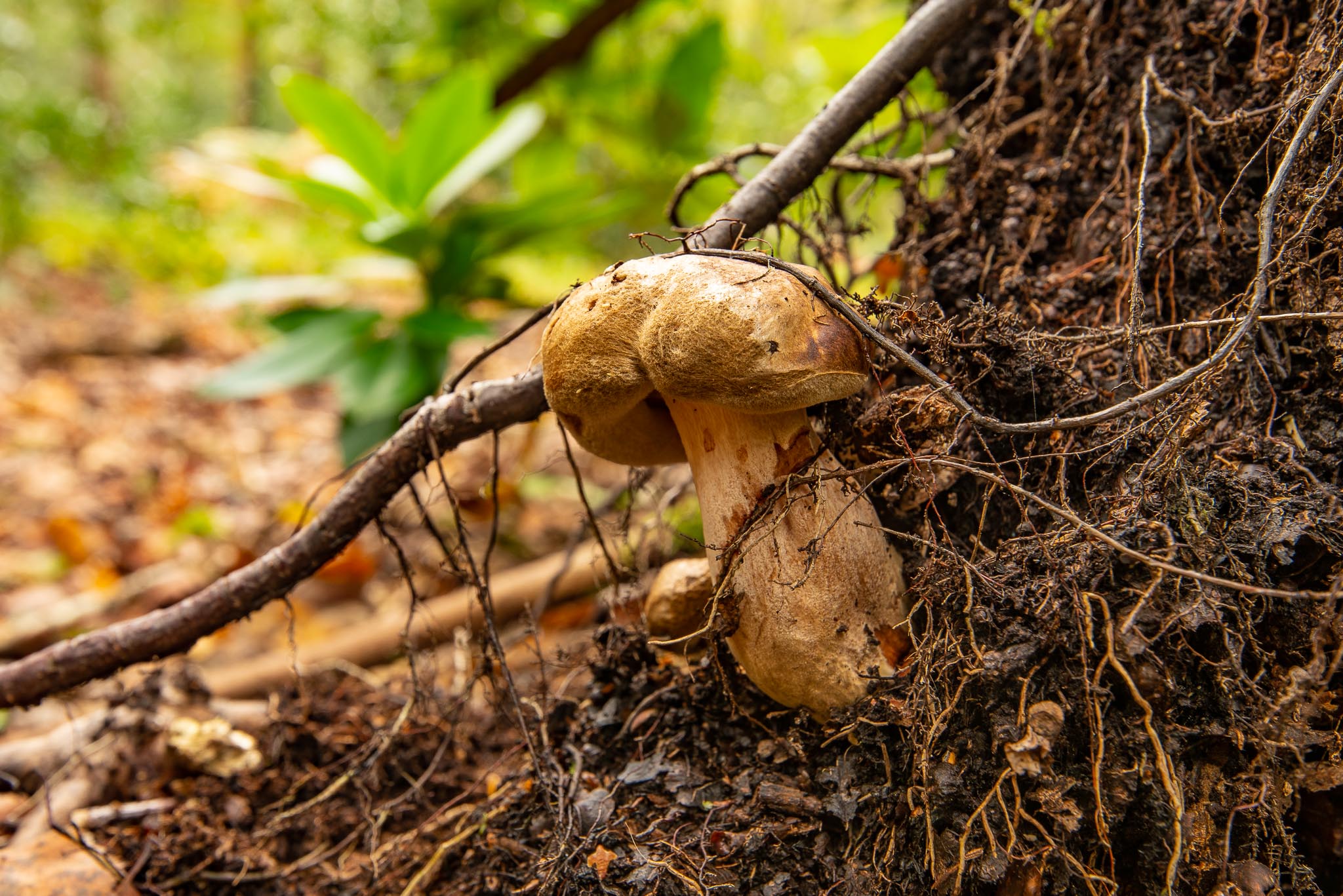 The most unusual find was in the raised rootplate of a rhododendron. From above they looked like potatoes. I am fairly confident this is a cep, Boletus edulis. It is, of course, also known as porcini and is one of the most sought after edible mushrooms. Foraging is not something I do commonly, so I left it there to grow on its merry way.
