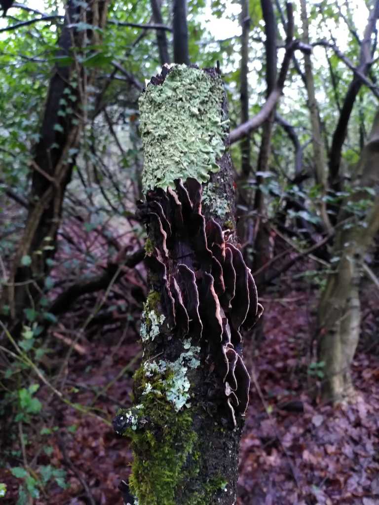 I wrote a little bit about turkey tail last week, and this week’s post is late because I entertained the idea of a turkey tail post in itself but eventually didn’t have the time. I think this is turkey tail. It’s quite a variable species so if you don’t know the basic features, can be confused with others. I’m it that camp.