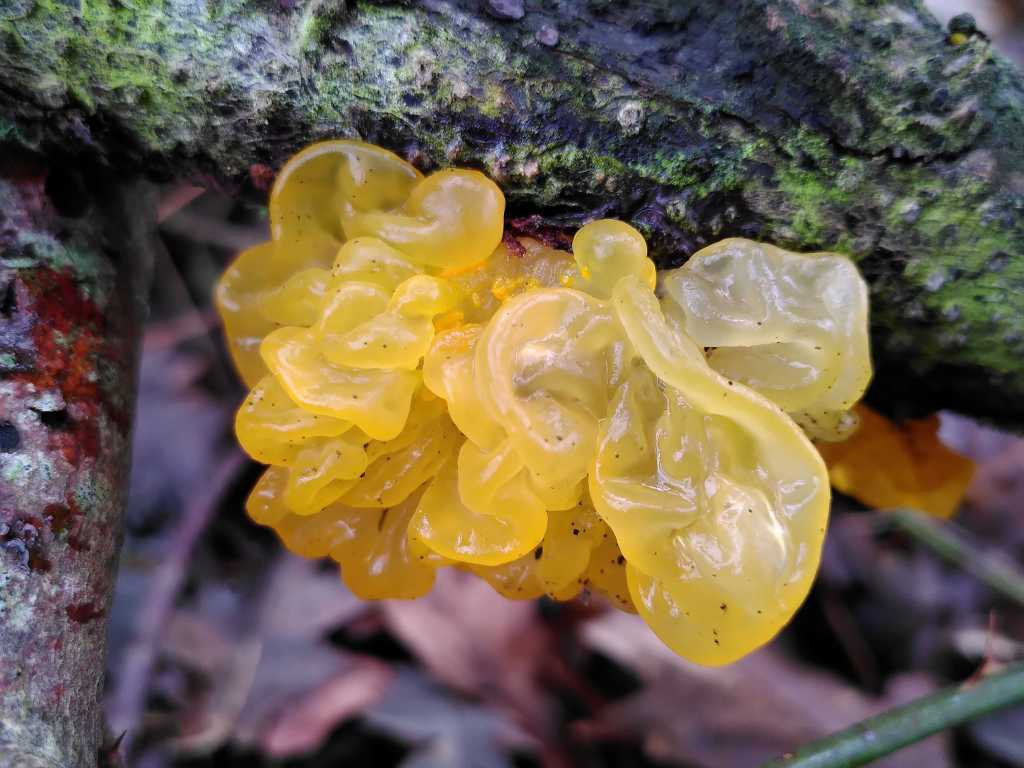 For the benefit of international readers, in England we’re supposed to only do walks from home or those involving a short journey. I’ve not been to my usual local woods in a while, but I can get to the edges of them or at least some mature, tree-lined avenues within a couple of miles whilst keeping away from other people. The standout fungus during walks this winter has been yellow brain, Tremella mesenterica. It is such a beautiful fungus and so unusual to see something so bright in the dark scenes of an English winter.