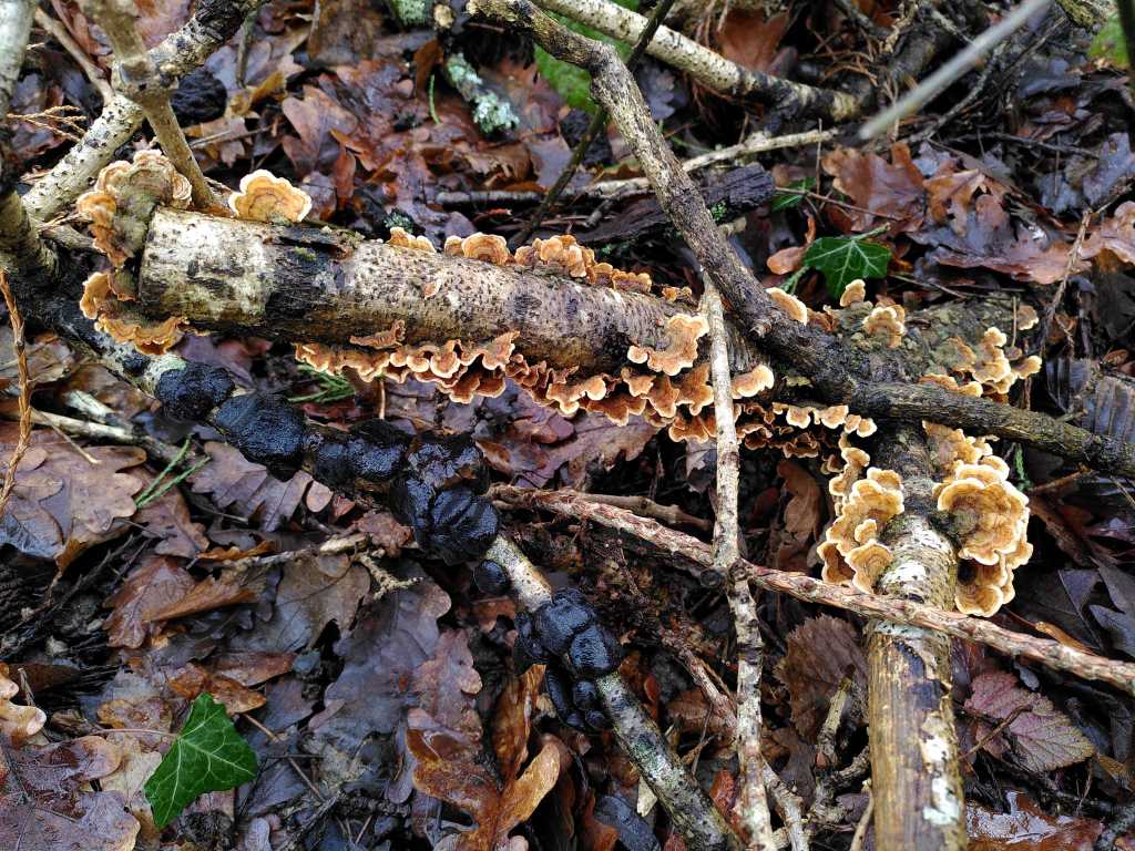 Quite similar to turkey tail is the Stereum family. This is probably hairy curtain crust (yep) and is very common in these months when rainfall is high and temperatures are hovering between 5-15 degrees Celsius.