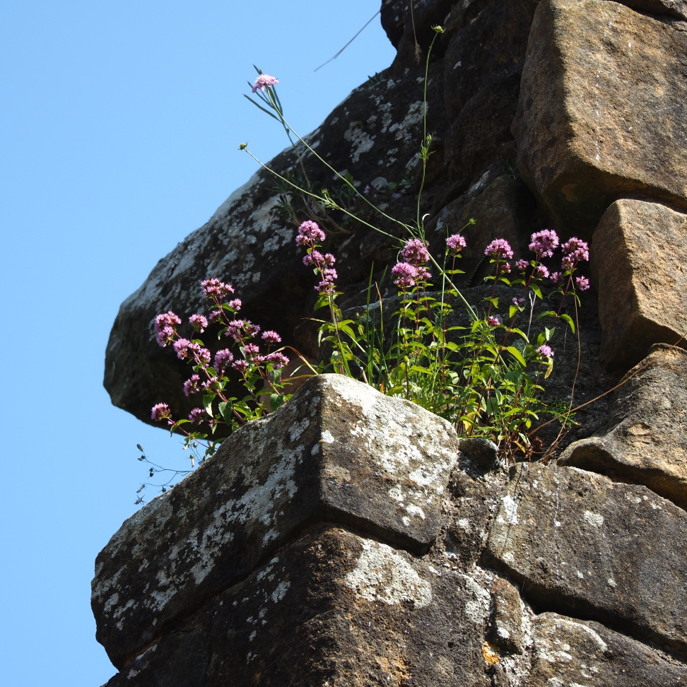 Inside the walls of the abbey, wildflowers burst from pockets of stonework: wild marjoram, black knapweed, St. John’s wort, field scabious and harebell. These flowers have taken root in substrates within the crevices of the masonry. They have prime positions to receive full sun, and are sheltered from some of the elements. It’s a great place to live.