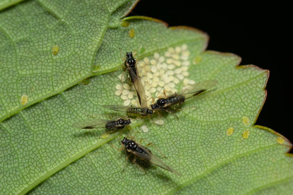 1st June 2021: aphids protecting their young (I think) on the underside of a sycamore leaf.