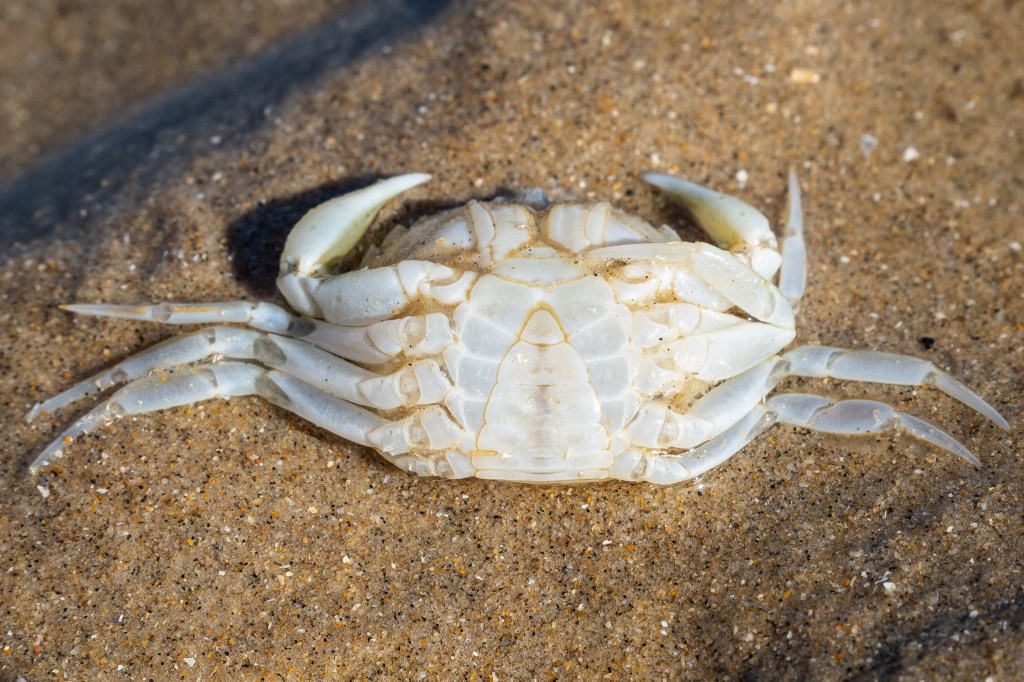 13th June 2021: the carapace of a European green crab at Rye Bay.