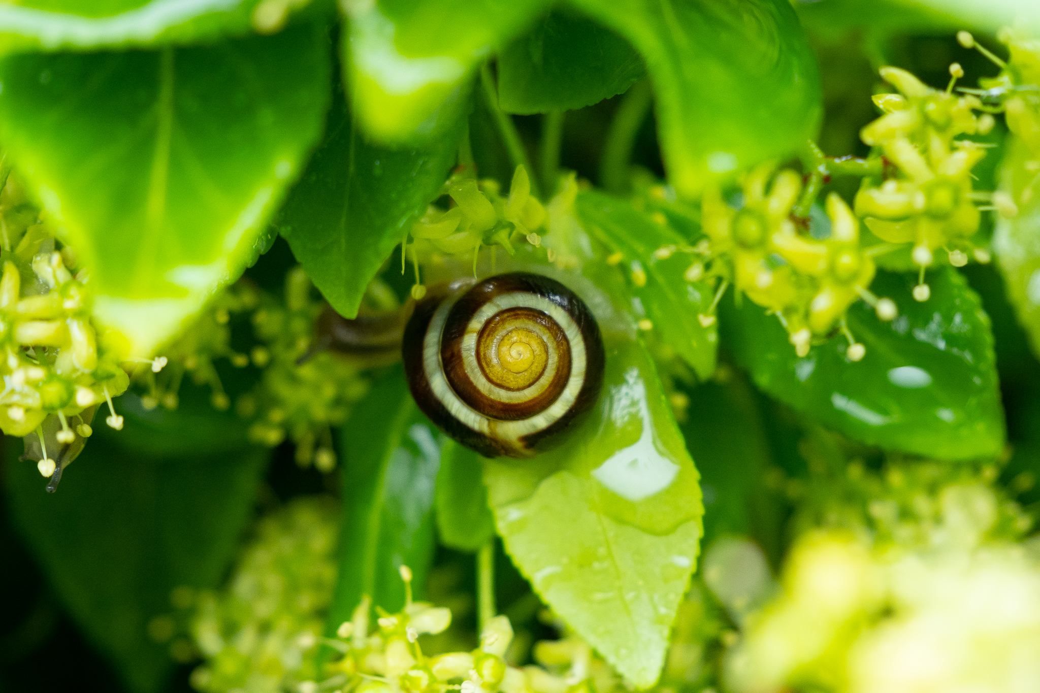 17th June 2021: a wet and rainy day when I thought a photo might not be possible. The hedge in my garden was alive with these beautiful snails. I opened the aperture to allow blur to occur and highlight the swirling shell.