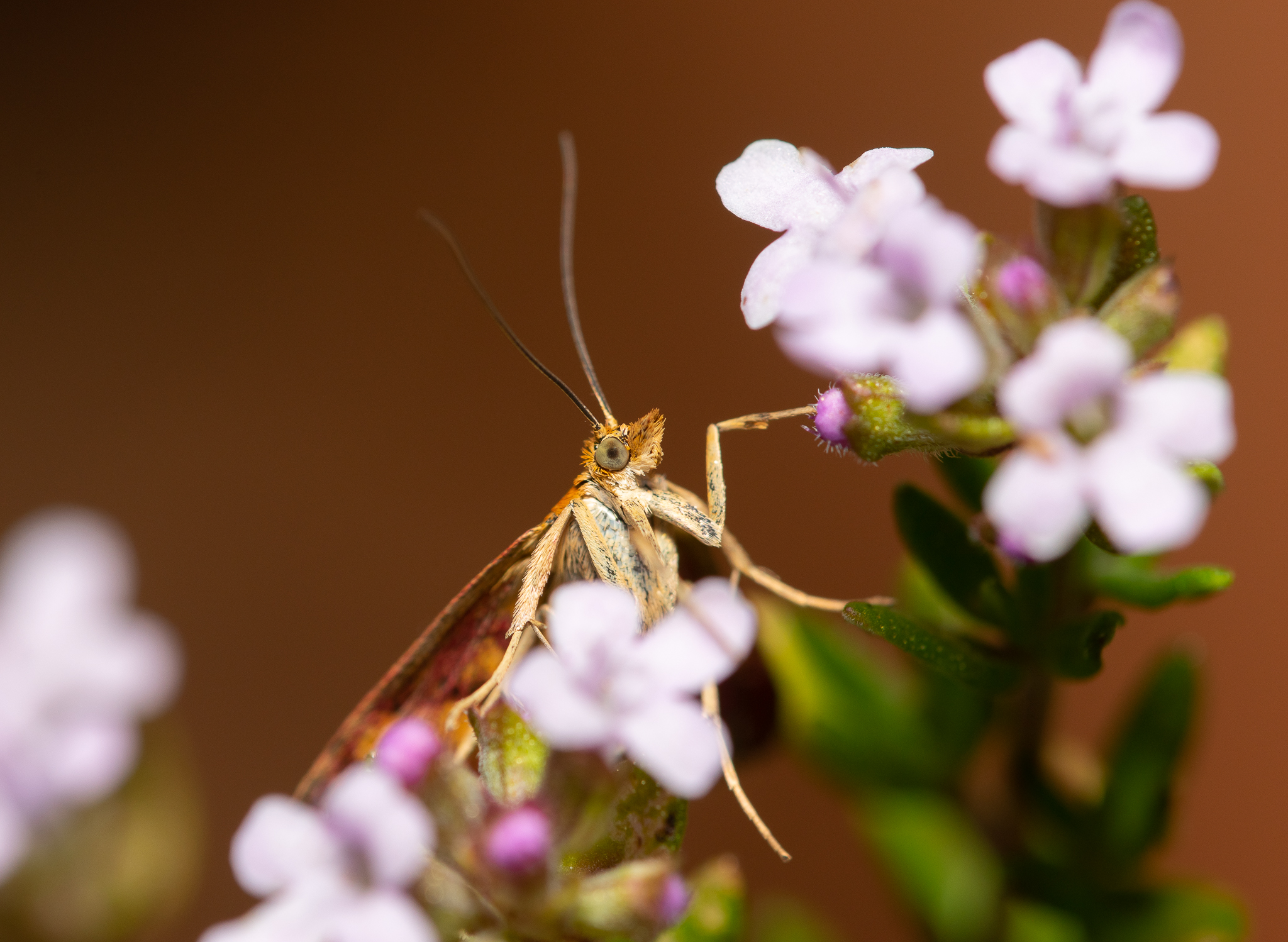 6th June 2021: a mint moth selecting its preferred thyme flower. This is one of the more common or visible day-flying moths I encounter.