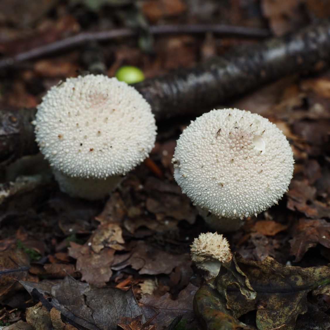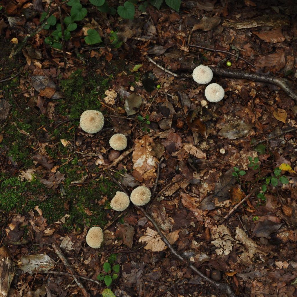 My first sighting was, in fact, in the soil. In the shade at the edge of the path I found a group of common puffballs.