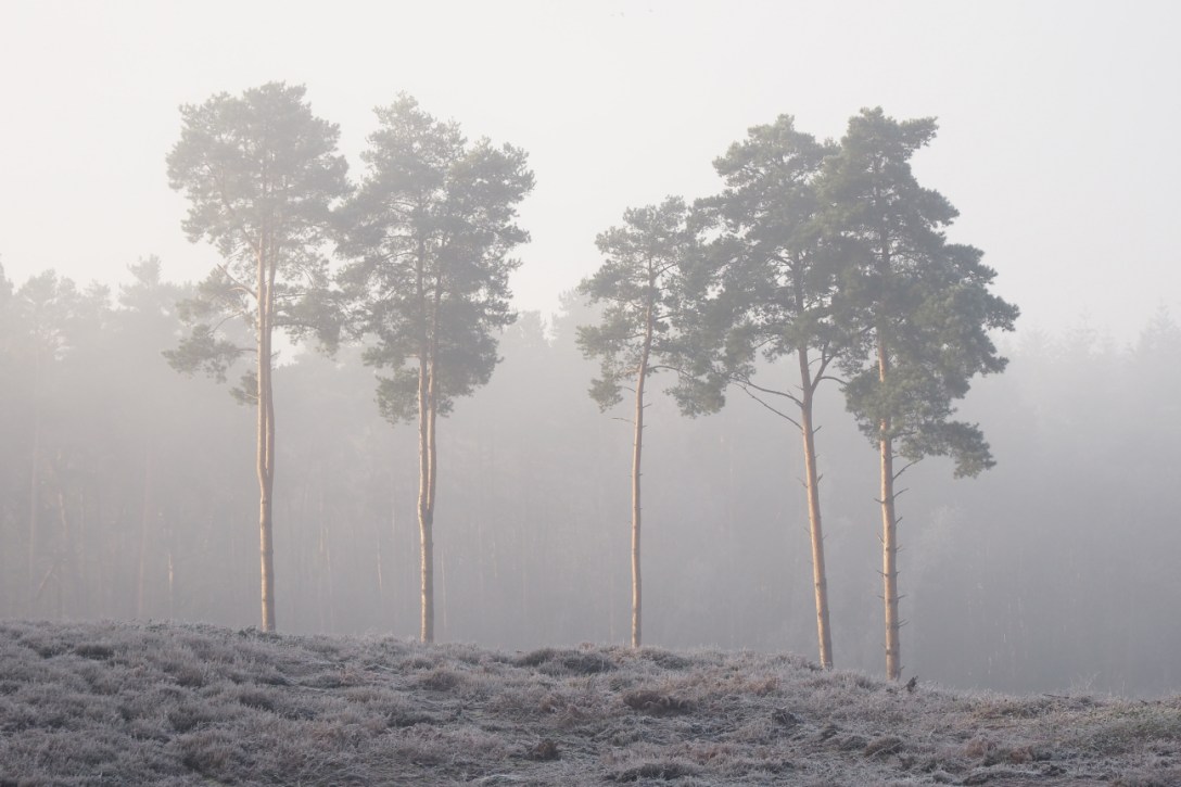Over on the other side of the common, the sun hadn’t arrived yet. The muddy paths were frozen still and the hoar frost decorated the birch trees growing at the heathland edge.