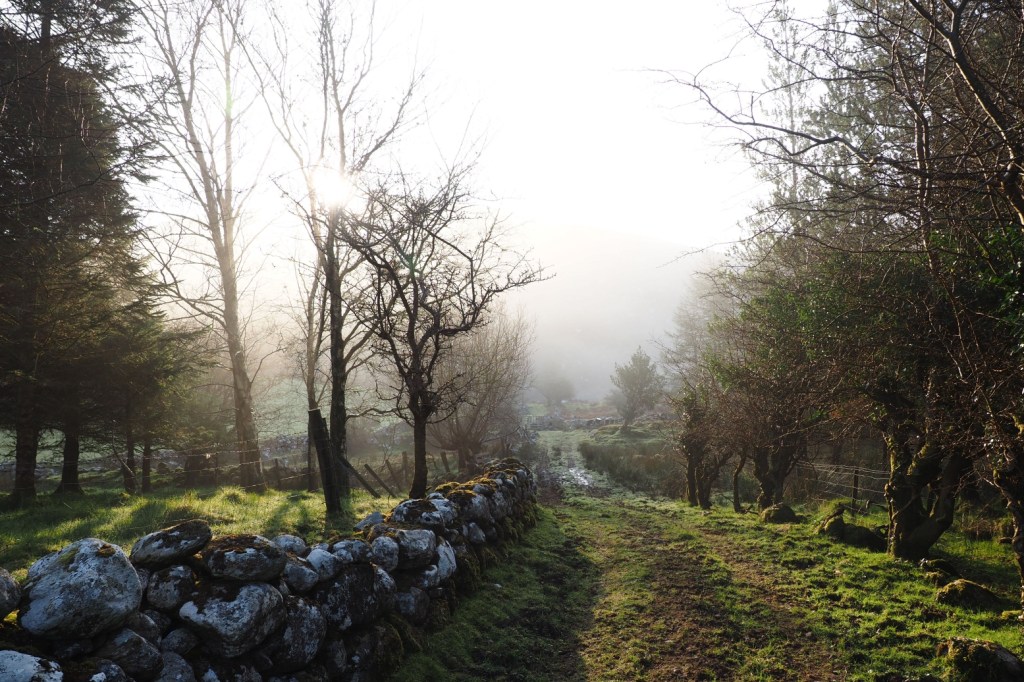 My family’s cottage is located near a mountain range that would probably be classified as hills in the UK, but their Irish name translates as Wintry Mountain (Slieve Gamph). The English version is the Ox Mountains. It was said that people once lived in these hills – granite, heather and peat bog – in simple stone cottages until the famine. I haven’t managed to locate anything resembling a disused cottage there as yet, but the wider landscape is littered with megalithic tombs, stone circles and other significant archaeology.
