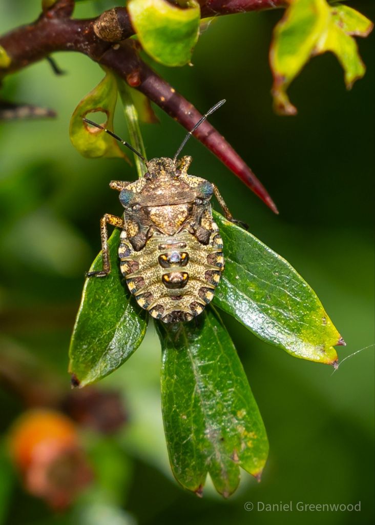 Elsewhere I found a few shield bugs sunbathing. These are forest bug nymphs.