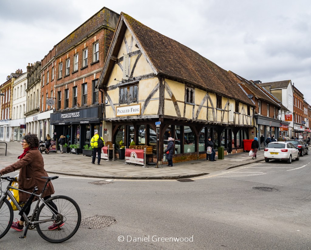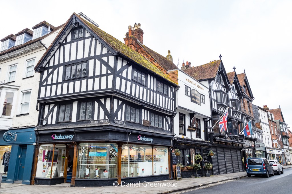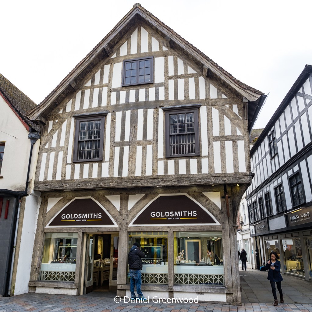 8, Queens Street (15th century). The timber-framed heritage of Salisbury is blended with the modern consumer outlets. I suppose this is just free advertising for them!
