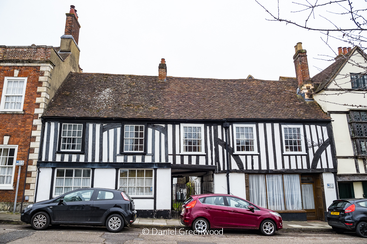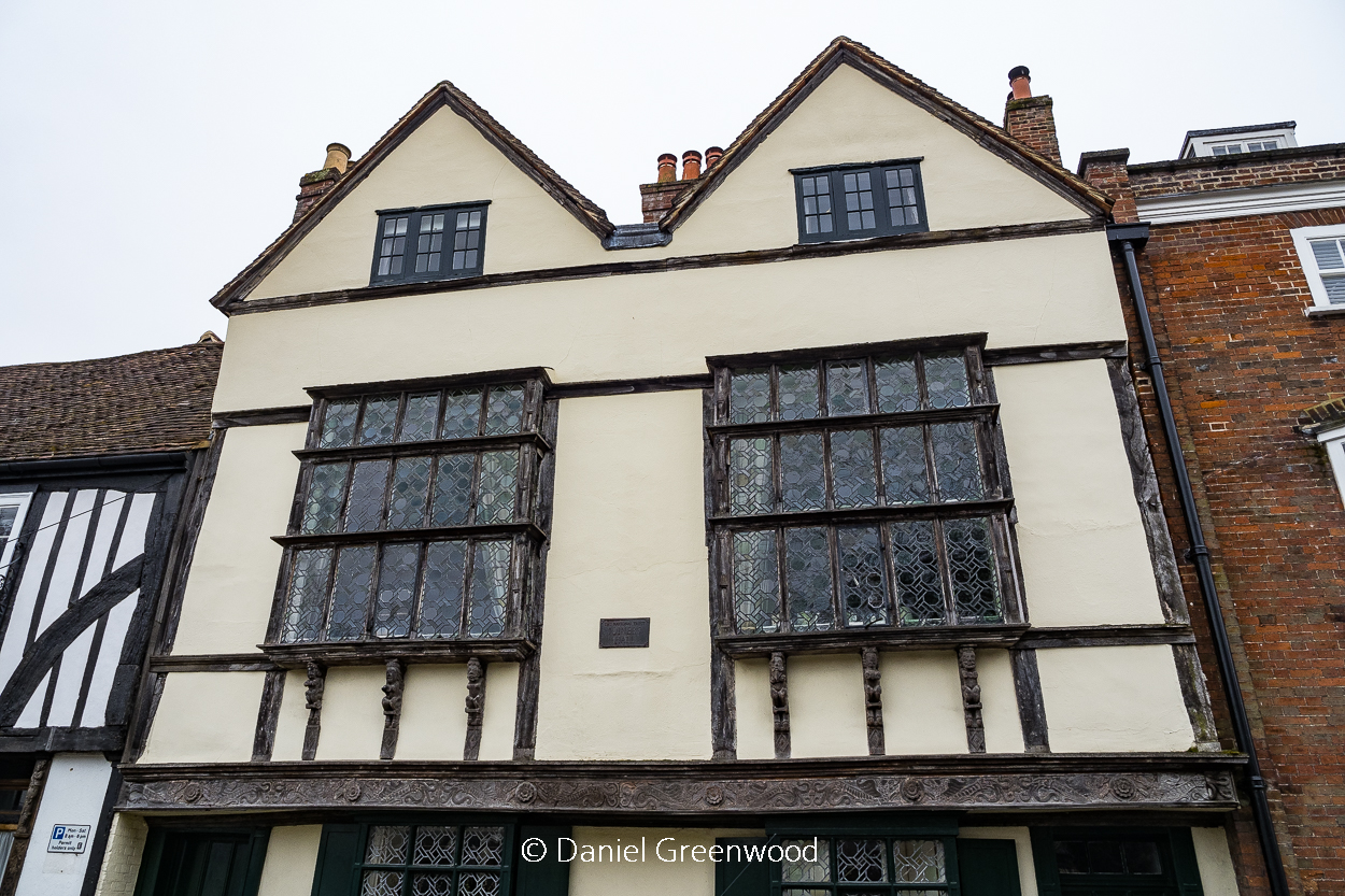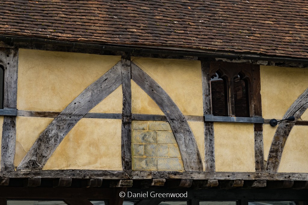 This one had been bought and redone, it didn’t seem to have quite the same character as some of the other timber-framers. The struts (curved beams on the middle level) are quite varied. Not how different most of the windows are.