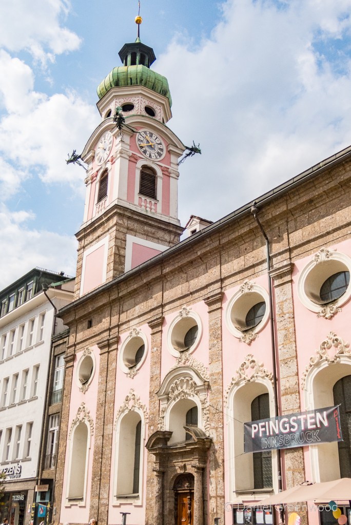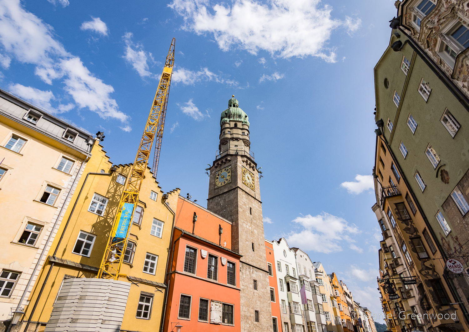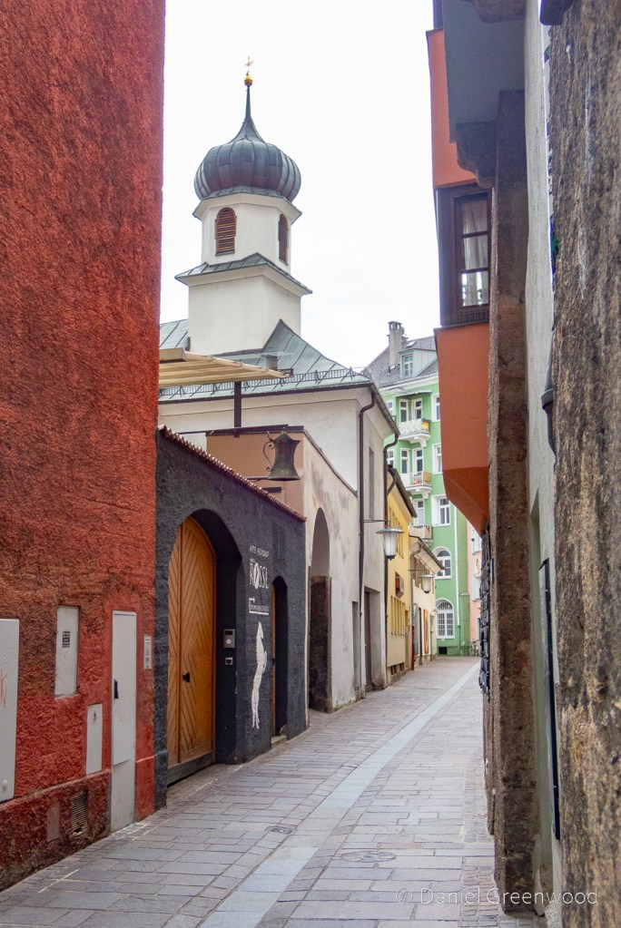 Innsbruck is a city of towers and spires. I don’t know how many were destroyed in the Second World War. As in Salzburg, I’m sure many were rebuilt. The tower seen in the last of the images above can be ascended for a small entry fee via a pair of spiral staircases. I have issues with heights, and I found this quite difficult. I was a bit ill at the time so that probably made it worse. The views from the tower are of course worth it if you can cope with the ascent.