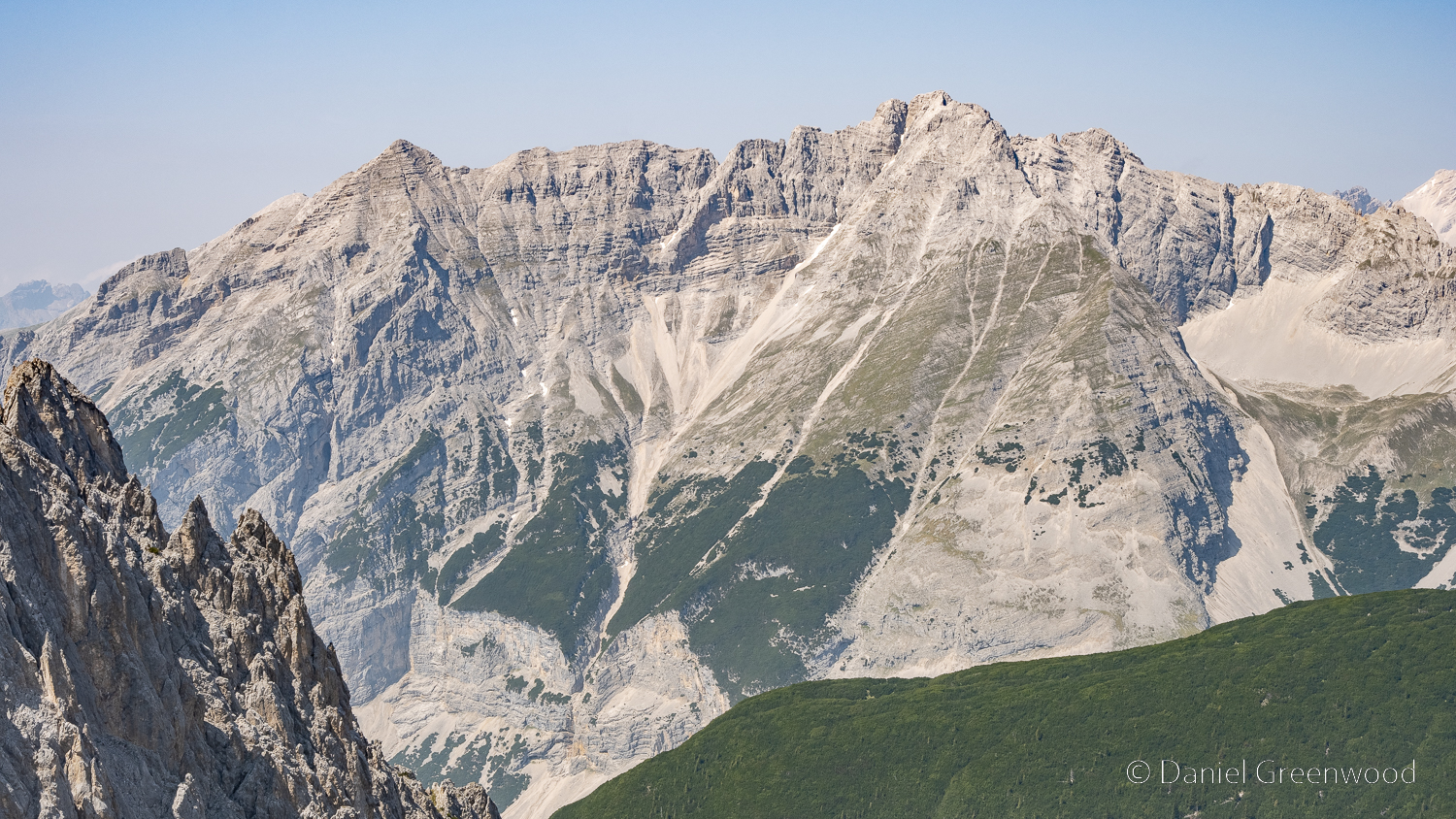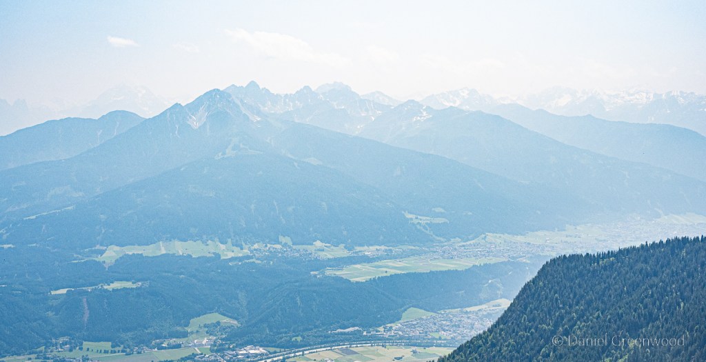 It was mid-June and the views from Seegrube were dimmed by the thick haze that rested across the mountains. I have edited these photos to draw out the shapes and colours of the peaks as best I can without ruining them.
