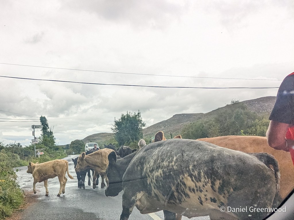 Back on home territory near the Ox Mountains I was forced to park up to allow these cattle to cross the road. I am sure that cattle have begun to replace sheep in this part of Mayo in recent years.