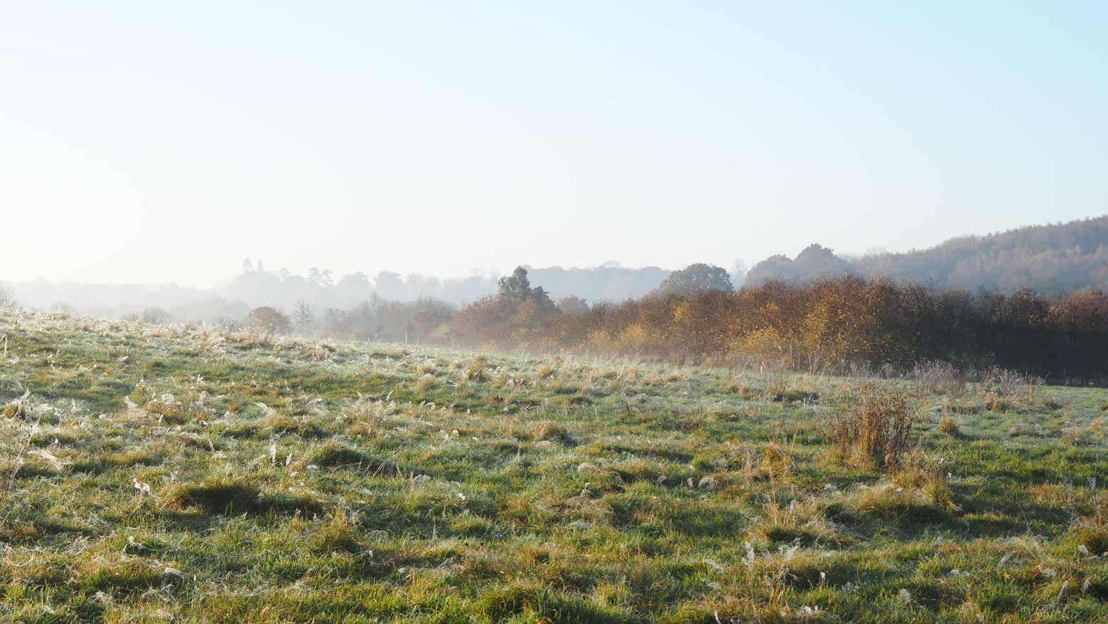 I first noticed the mist as I walked down the road where the landscape slopes gently towards the river. The hill in the distance was softened by a white veil of mist.