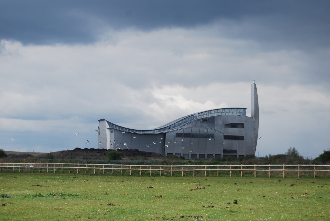 It’s late afternoon and the sun begins its descent toward Dartford. In the east the bridge is reflected in the shimmering Thames. Rainham Marshes is behind us, beyond the large concrete seawall and iron fencing, protecting the reserve from dogs, people and vehicles, protecting skylarks and lapwings, birds that breed on the ground. Gulls pass over from the marshes and across the Thames to the south. A deceit of lapwings exits, too, their flappy black wings belie their compact shape when grounded. They return to Rainham a few minutes later. Evidently this is not an exodus. Teal are swimming on the Thames, their colours draining as the sun retires behind them. We inspect the shoreline, its thin marshland and garbage. The ducks want to feed here, but what’s to be eaten? The tide bubbles audibly against concrete, an armchair rests at a tilt in the marsh, half against the slanting ground and half in the slurry. The chair is stained where it’s become soaked by liquids other than water over the years. If you were to sit in it, you’d fall backwards, skull first. The dry land is tropical with all kinds of plastic: caps freed from their bottles, thin tubes like the insides of biros, thousands of bits of broken plastic, and a syringe. There are pieces of driftwood lying around, one chunk has been bleached by sun, sea and salt. It breaks under the slightest pressure, the yellow shape of woodworm hibernating in a crevice created inside. I wonder how far this piece has travelled.