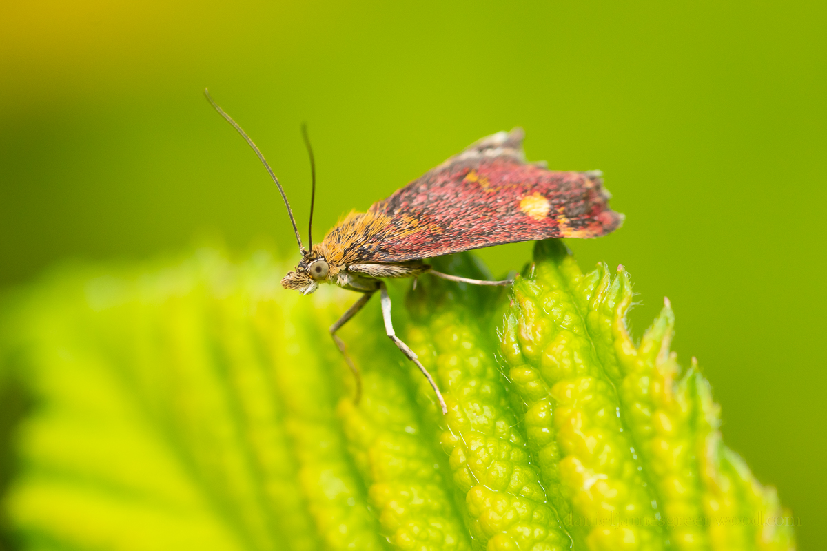 Day 18/30: the difficulty of a photo challenge each day is managing your expectations and trying to keep things simple. I took this photo of a micro-moth in my house at about 9pm or later. At first it looked like a little smudge but with the benefit of flash and a bit of editing, it has red hair like me!