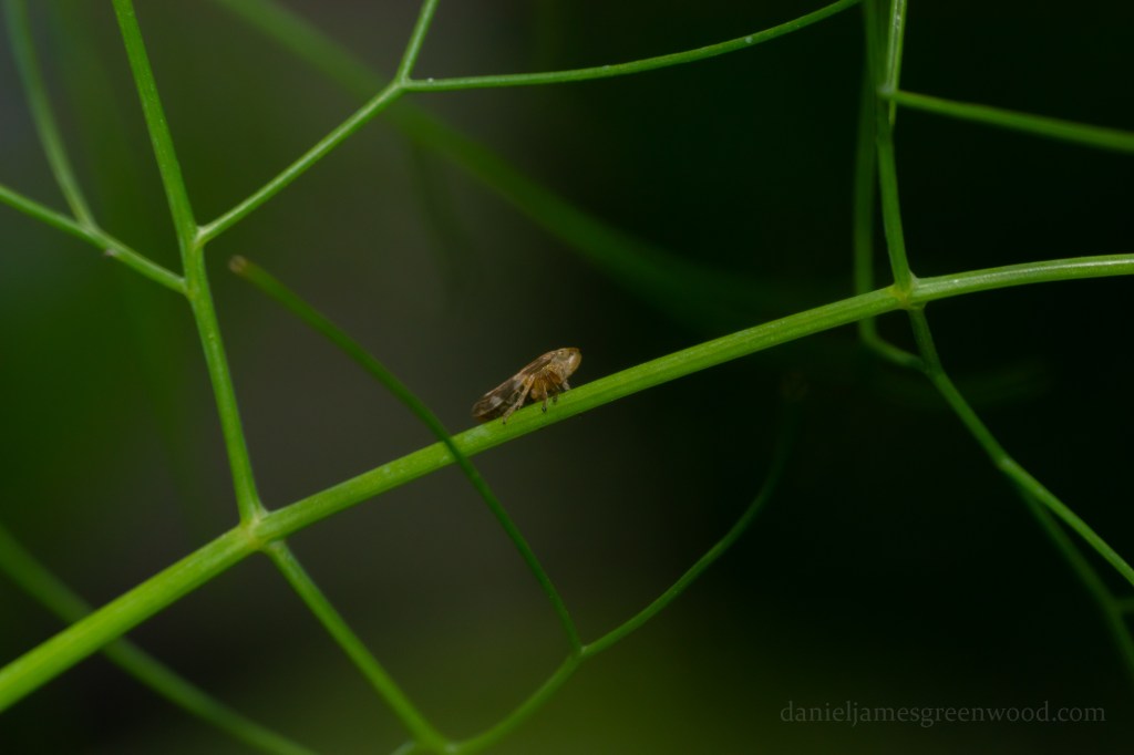 Day 21/30: I like this photo because the fennel leaves and stems make it look quite abstract. This is probably a meadow spittlebug, a common leafhopper. I took this one after sundown.