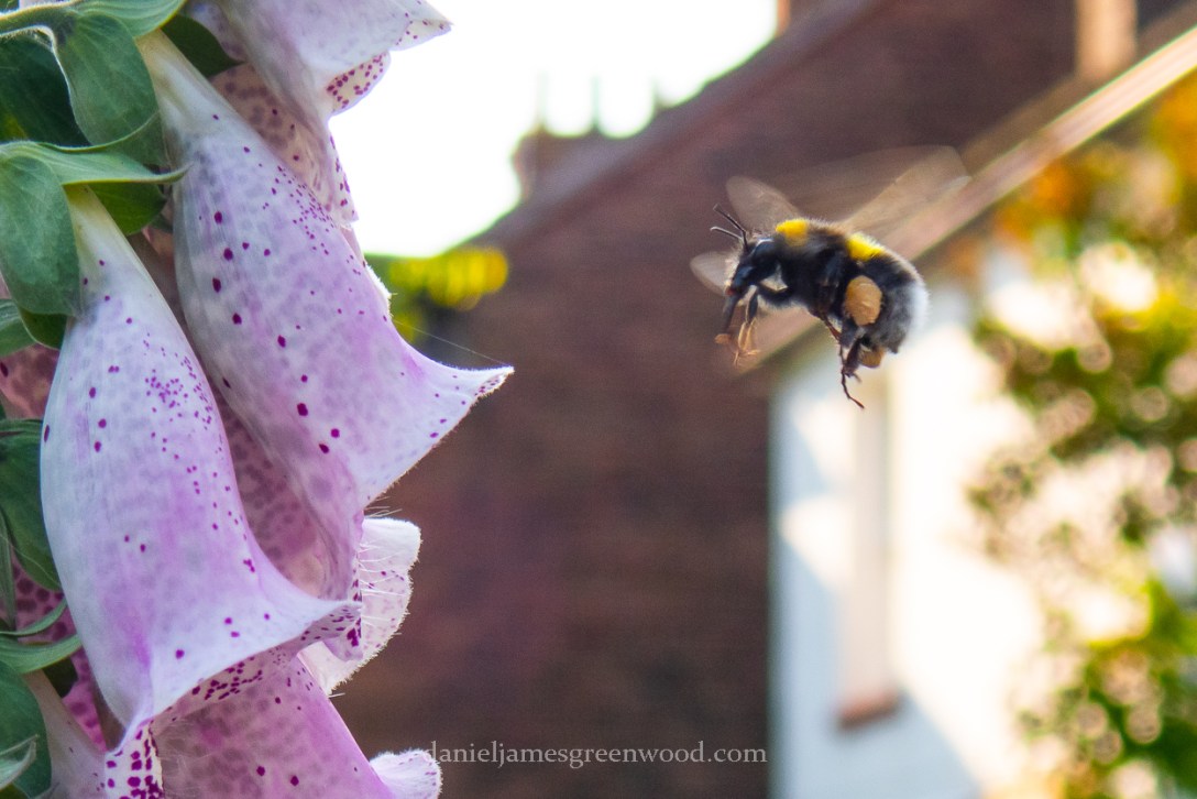 Day 5/30: I was lurking around the borders of my garden where the foxgloves grow, waiting for bumblebees to emerge from the flowers. Luckily this bumblebee chose to hover for a while so my camera could lock on and get the in-flight pics. Impressive for such a little camera!