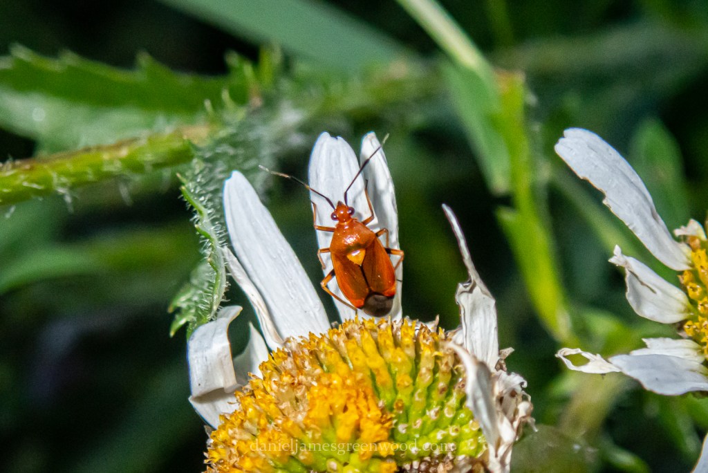 Day 11/30: I only managed to venture out into my garden as night was falling. I found an absolutely miniscule wasp of some kind, as well as a typical yellowjacket harvesting wood shavings from the fence. The bug is probably a mirid or plant bug growing into an adult.
