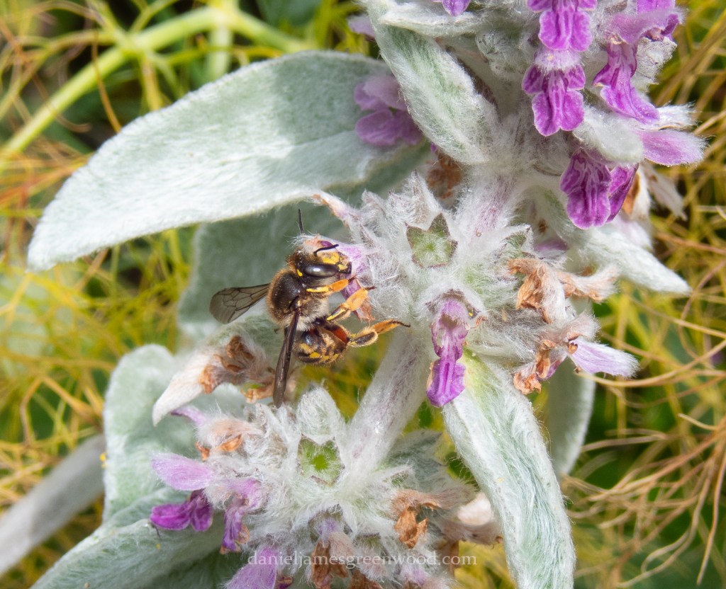 29th June: I planted stachys (lamb’s ears) especially for this species, the wool carder bee. I haven’t seen much of them this year but they did show up towards the end of June. I love them, they’re also easy to photograph in cooler weather as they just clamp on to the flowers and chill. I blogged about them in 2020.