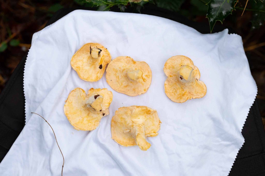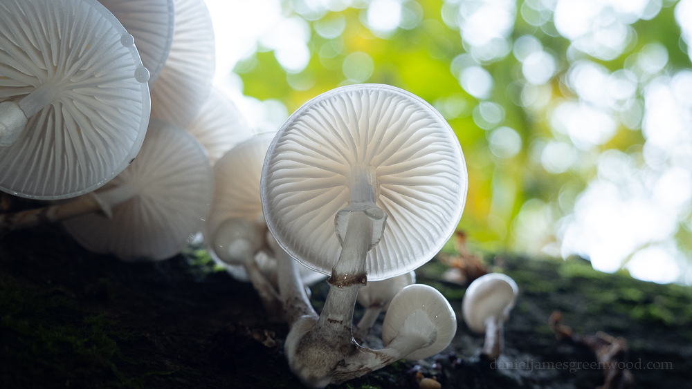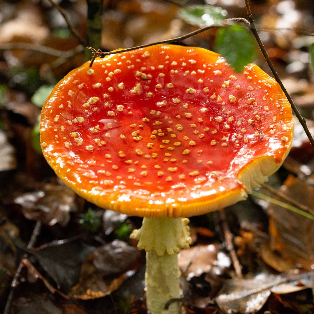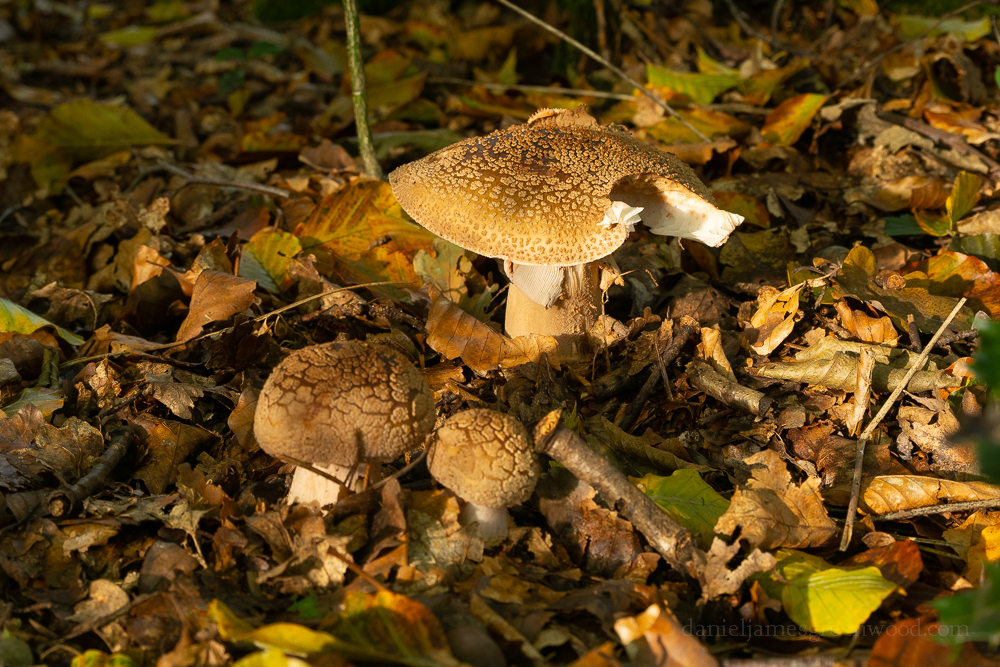 I struggled to get a picture I was entirely happy with here. This is a false deathcap (Amanita citrina), a common species in oak and beech woodlands. This one was in perfect condition. The light from the sun in the background was quite harsh. I used my phone torch to highlight the gills and stipe.