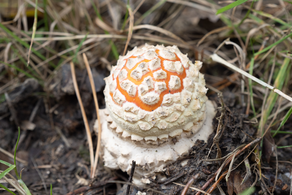 Here’s the mushroom again from above. You can see the veil remnants on the cap, which have become attached after it broke through from the ‘egg’ seen at the base of the stipe. Looking at the iNaturalist page it says this species is about to be broken up, taxonomically, into several species!