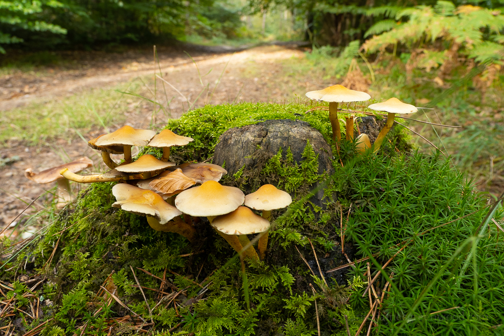 Moving to less colourful characters, in the same area I found a large community of bolete mushrooms, a mix of bay bolete (Imlera badia) and ceps (Boletus edulis). I didn’t pick any if you were wondering, but I did take some pictures!
