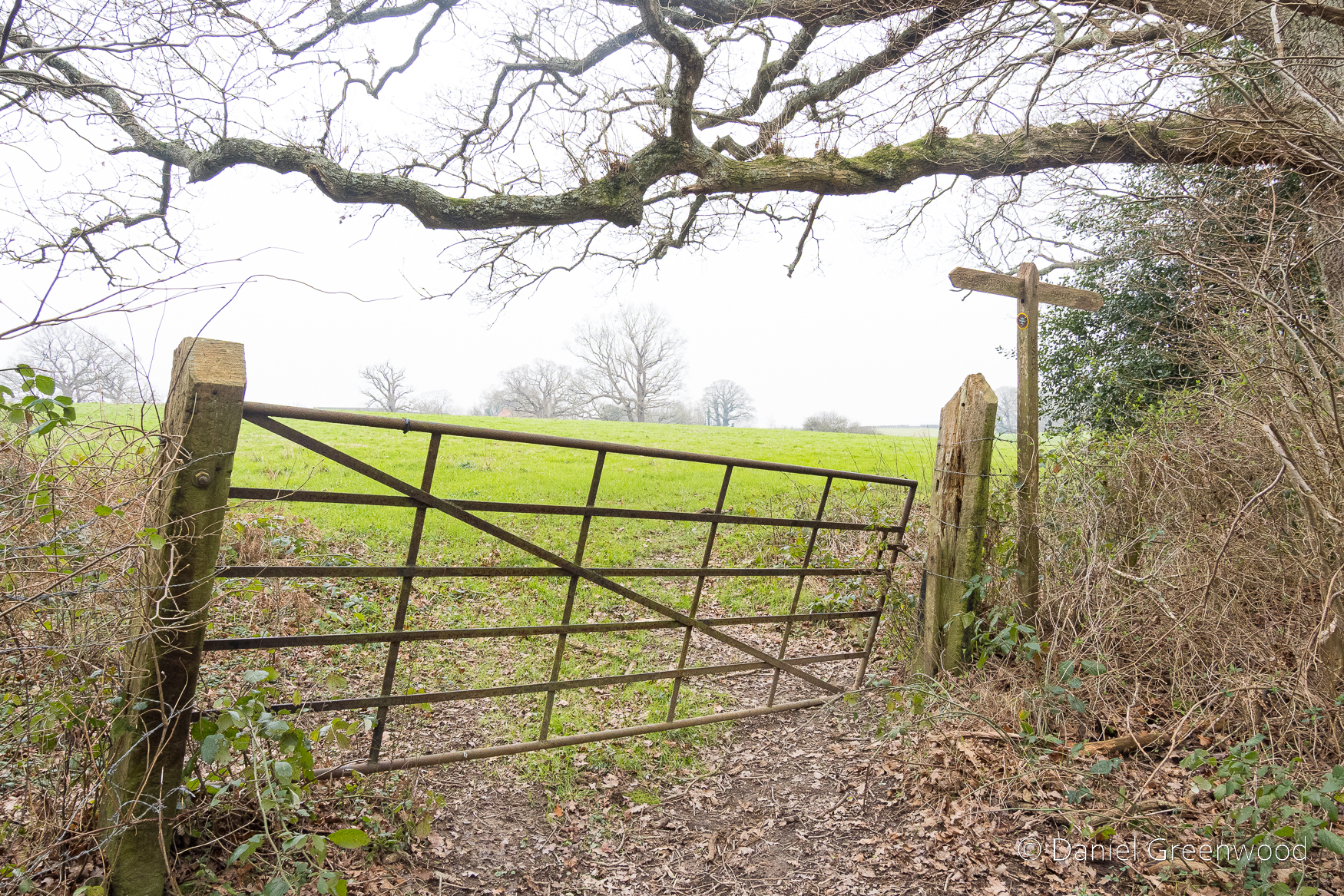 Having found the path again, I passed through this lopsided gate into the field.