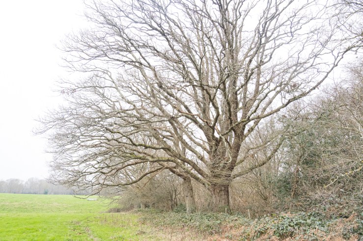 The proposal is called Newbridge Park (there’s a consultation online which closed in January). This area would become a country park, which is wise. Driving along the A272, the sight of the Arun flooding these meadows is a sight to behold. No one would seriously suggest building along this floodplain (would they?), particularly with the sort of winter deluges we’re getting now in this part of England. This is a rather old oak, perhaps 200 years, sitting at one of the bends in the Arun, which is just below the ground level.