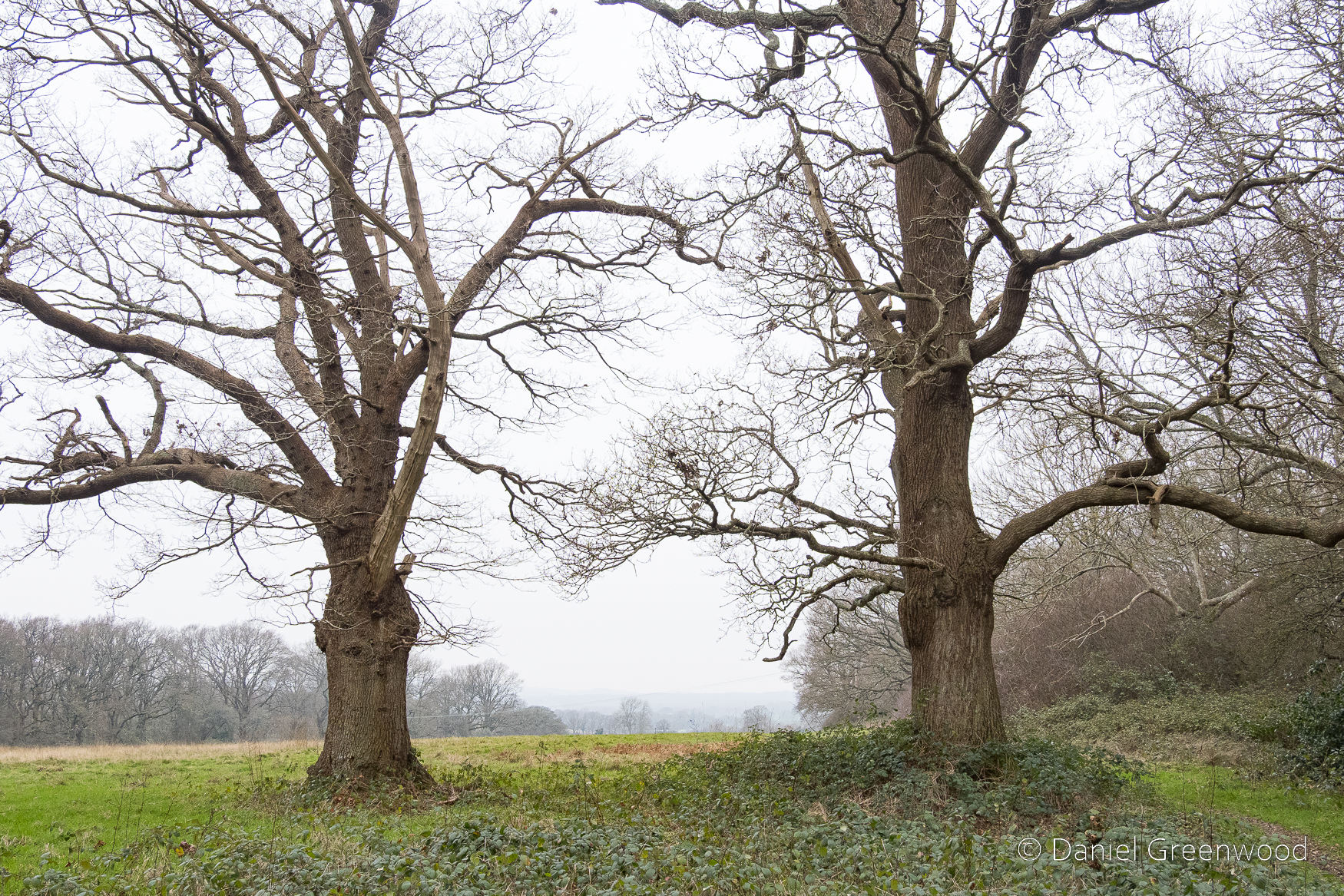I passed this massive oak (it looks smaller in this image than it is in real life) several days a week between 2018 and 2022. The mud underneath is from the cattle standing there to shelter from the rain. The oak is probably around 400 years old, making this stretch of the Wey-South Path around Billingshurst a land of giants.