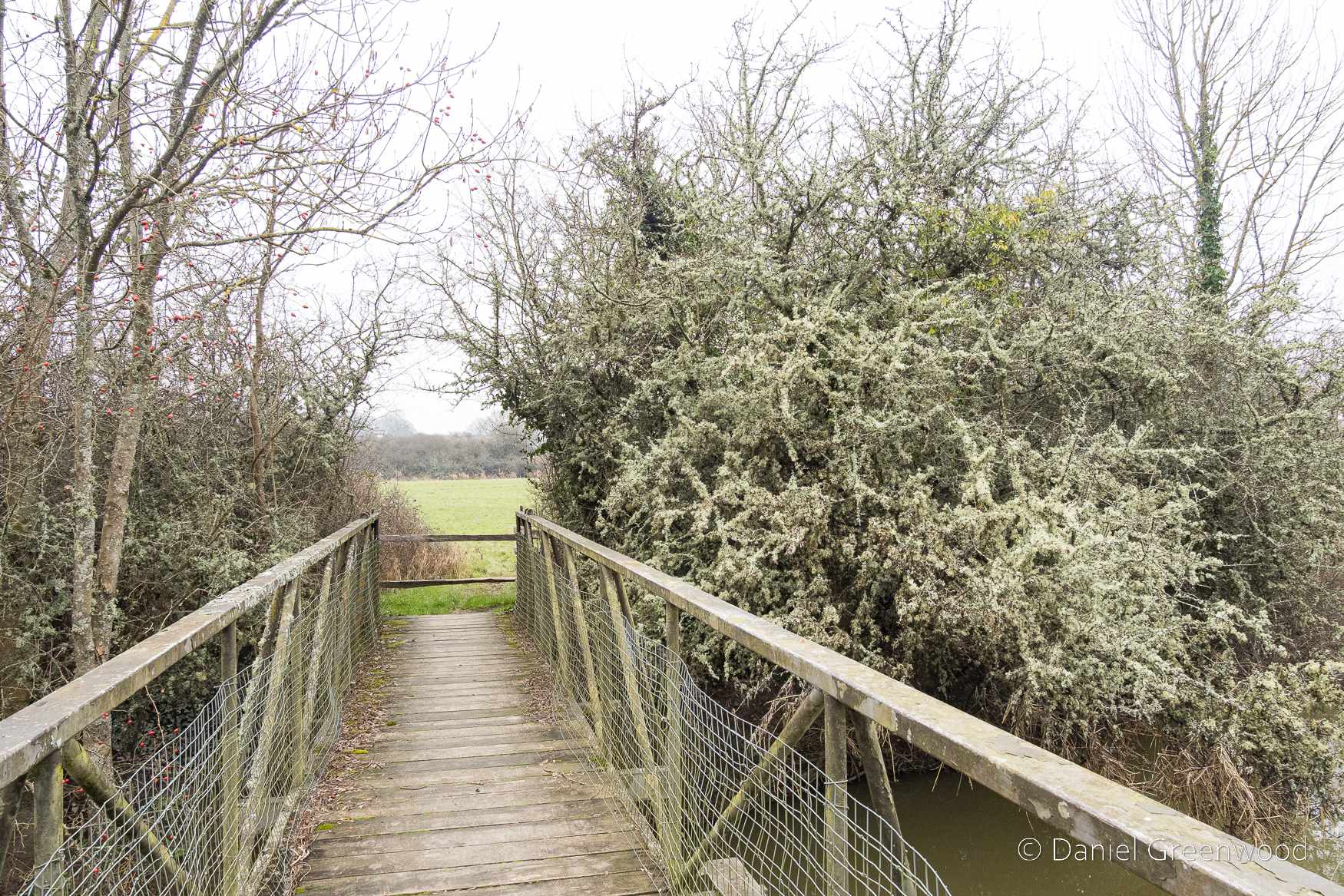 January is too early for blackthorn, though that is changing with the march of climate change. This froth of white is actually lichen hanging over the Wey & Arun Canal.