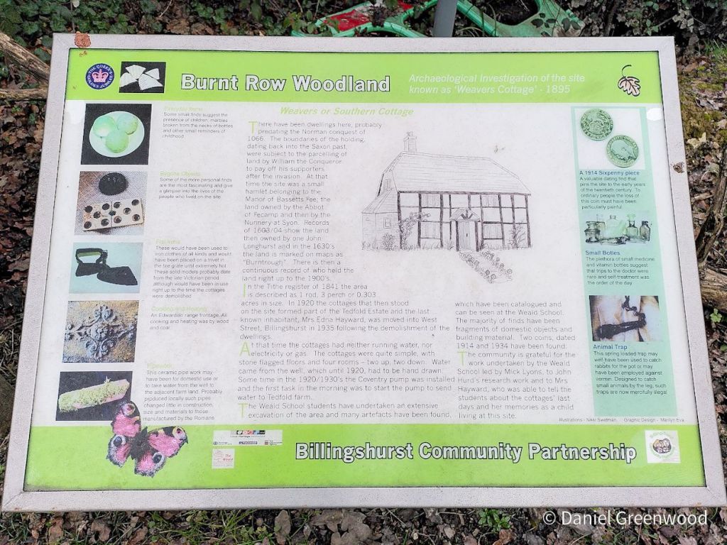 There are some interesting boards near the A29 crossing as you enter back into Billingshurst. I’m sorry that this timber-framer didn’t make it. This settlement seems to be very old, possibly prior to the Norman Conquest of 1066. Local school children have found lots of treasure at Burnt Row in their research into the site.