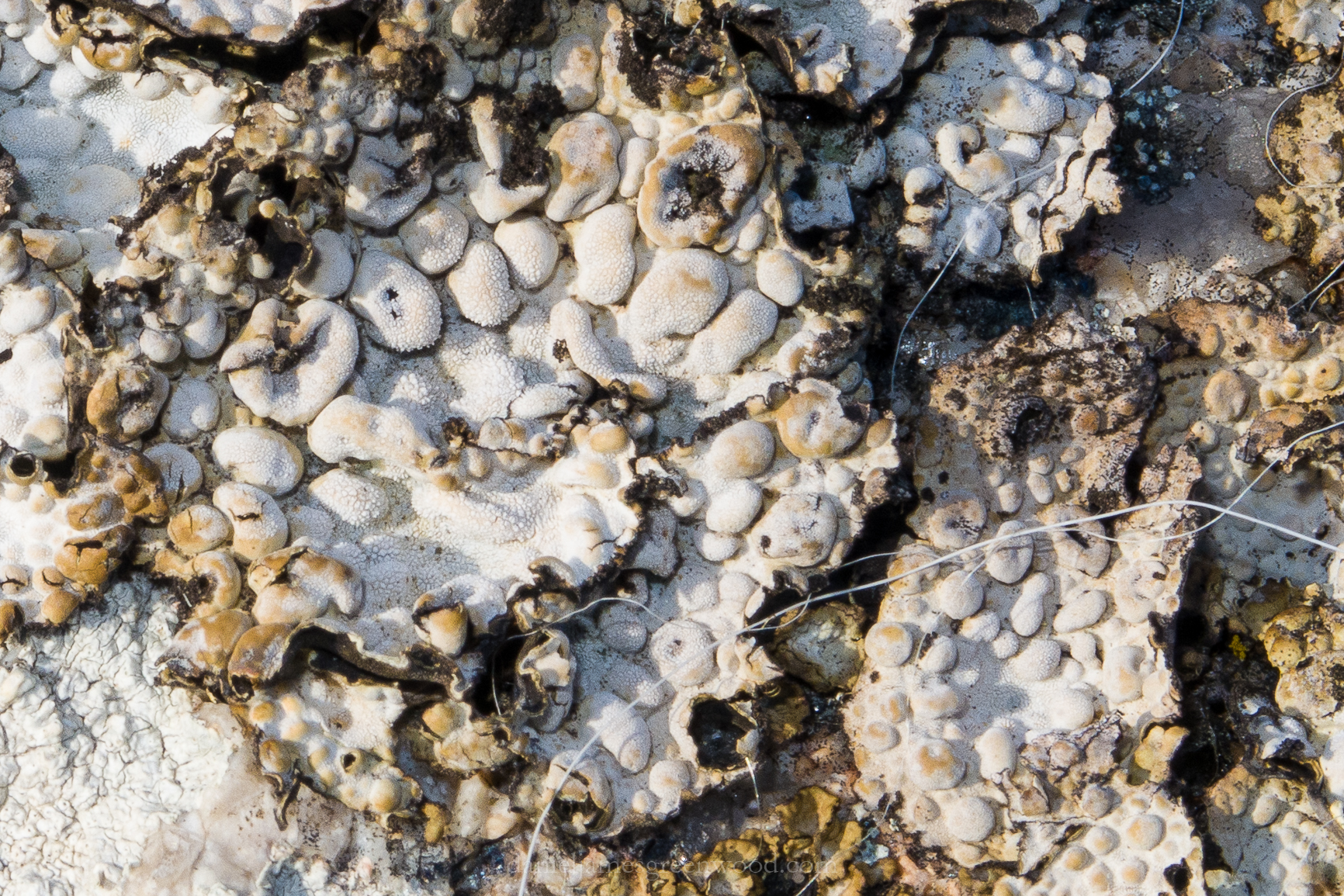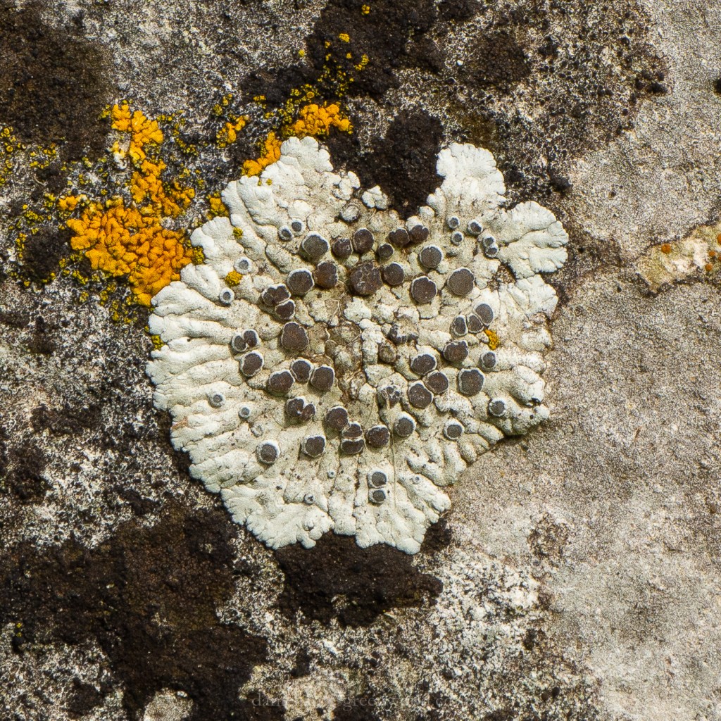 This bubbly-looking boulder lichen was growing on the approach to Wistman’s Wood. The threads in the lower right-hand part of the image are hairs from sheep or cattle which have squeezed past the rock.