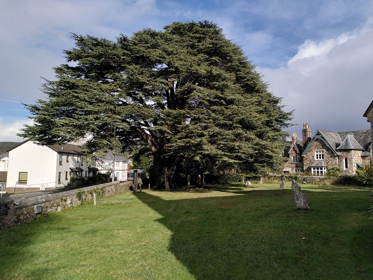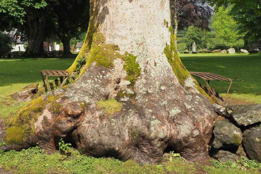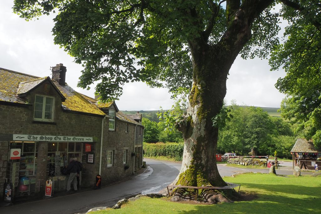 The village of Widecombe has a large sycamore growing on the edge of the green. This tree shows why scyamore (Acer pseudoplatanus) is a good wildlife tree, because it can provide habitat for lichens.