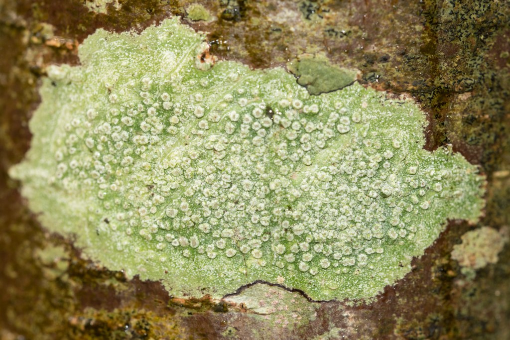 Some of the less flamboyant lichens, but probably more common, are these pore lichens. I think pore lichen is an American name, which isn’t used in Britain. I don’t really care and am always frustrated with the rigidity by which species recorders approach these issues. We need common names to encourage more interest in nature. I know Tyrannosaurus rex is a popular name, but Latin names do not capture the imagination in the way that common names do. Stinkhorn, anyone?