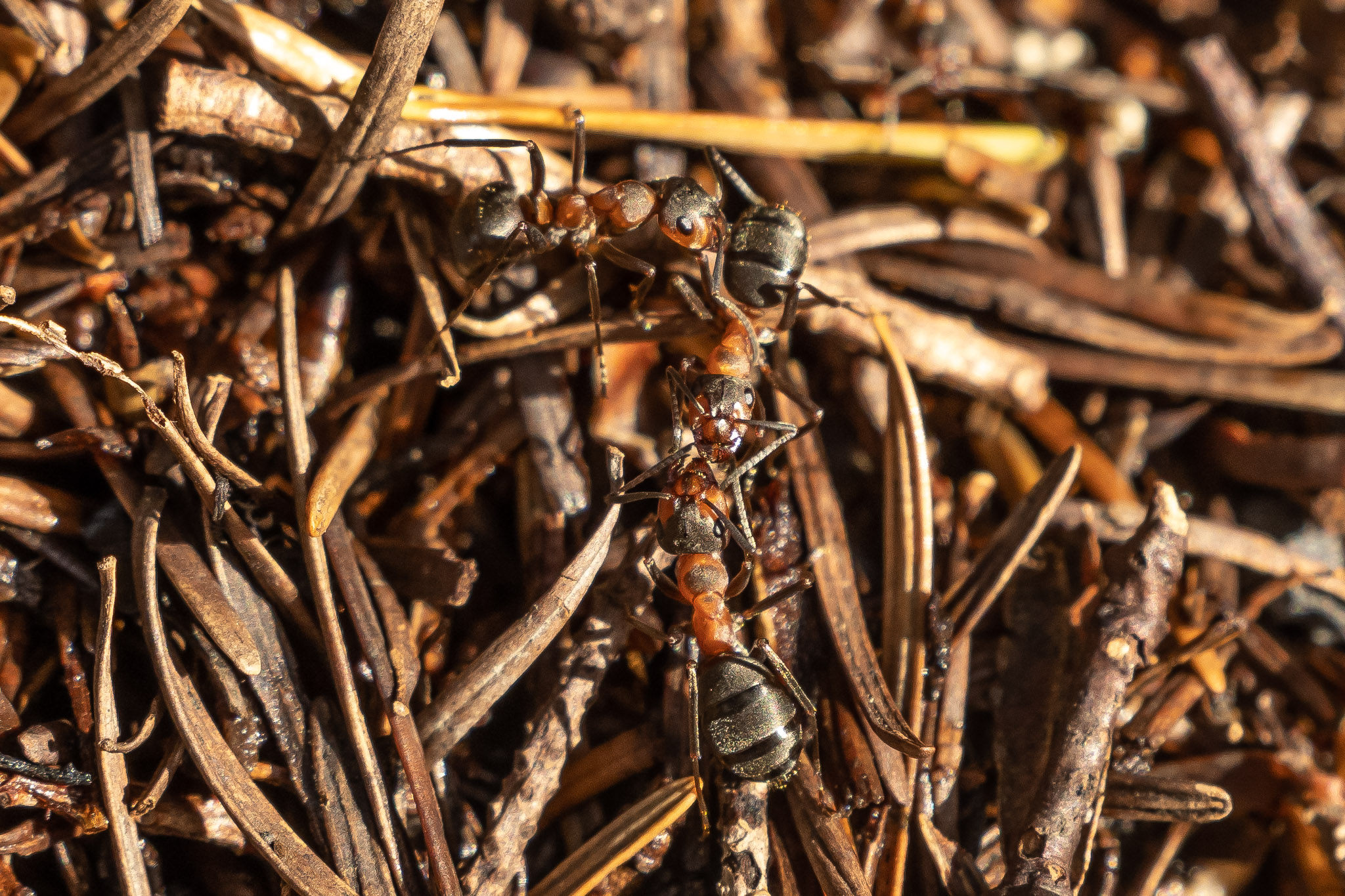 The ants were still active, with quite a lot of interaction going on. I wonder what role fungi play in the structure of certain ant hills. Ants have been found to cultivate fungi gardens inside their nests, and there must be other ways that ants mix with the fungal kingdom.