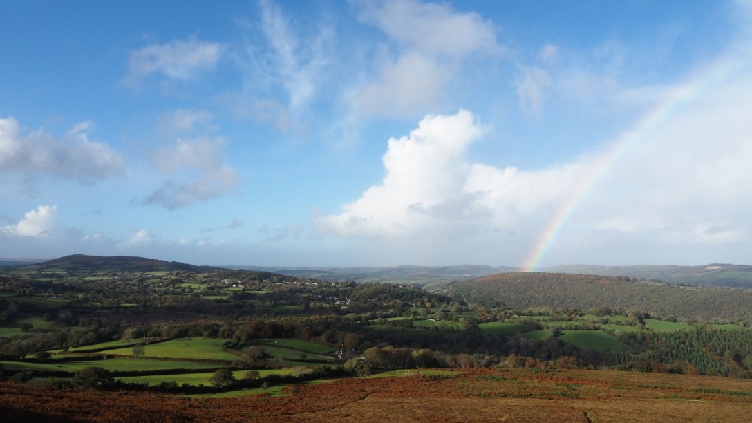 This is the landscape where the fungi lived – moorland with a view towards the Teign estuary.