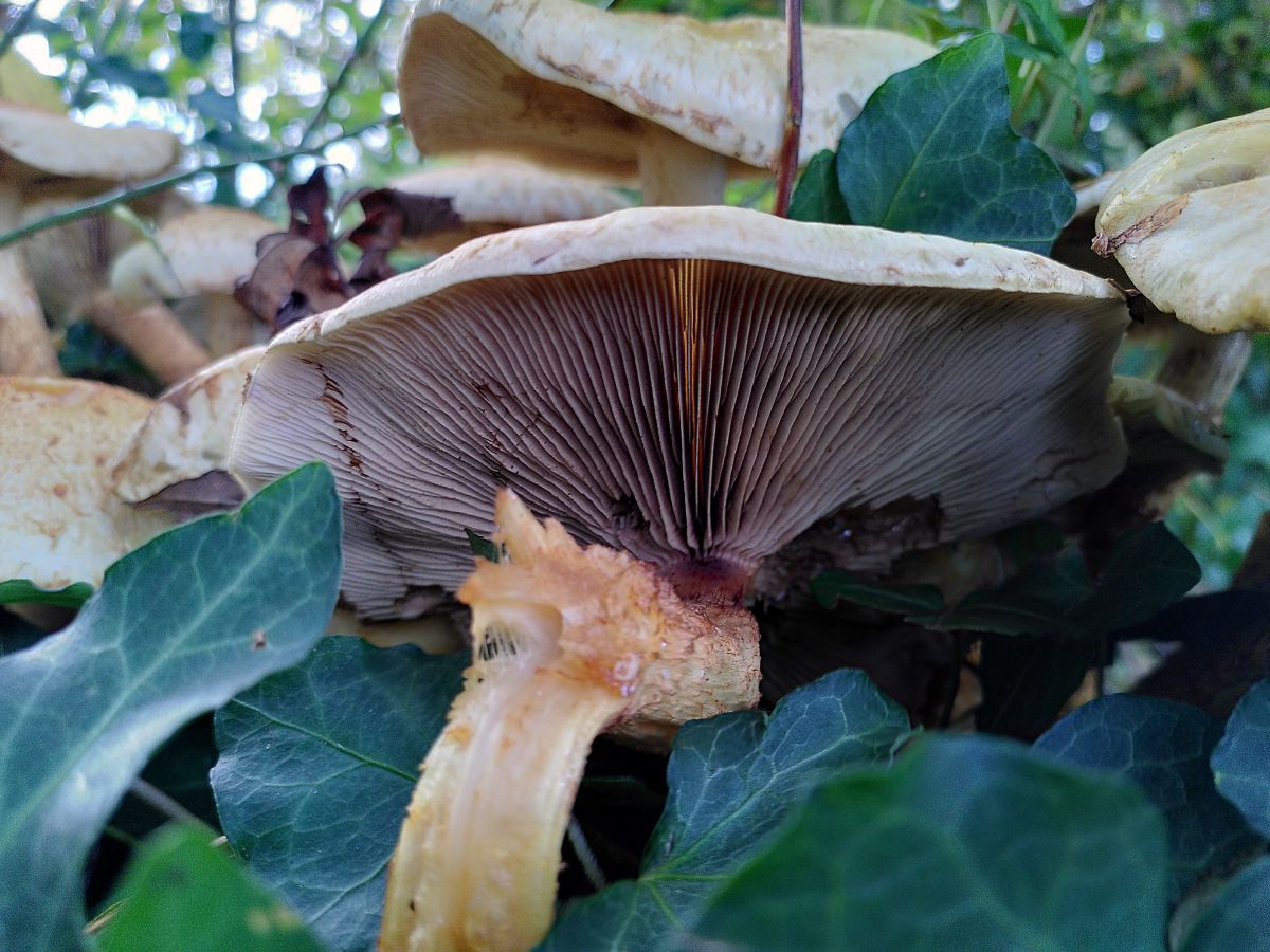 There is someone who has commented several times on this blog asking how or when to find honey fungus. If you’re reading this now, honey fungus is fruiting en masse at the moment. They are very photogenic indeed in the early stages, like the cartoony image of what a mushroom should be.