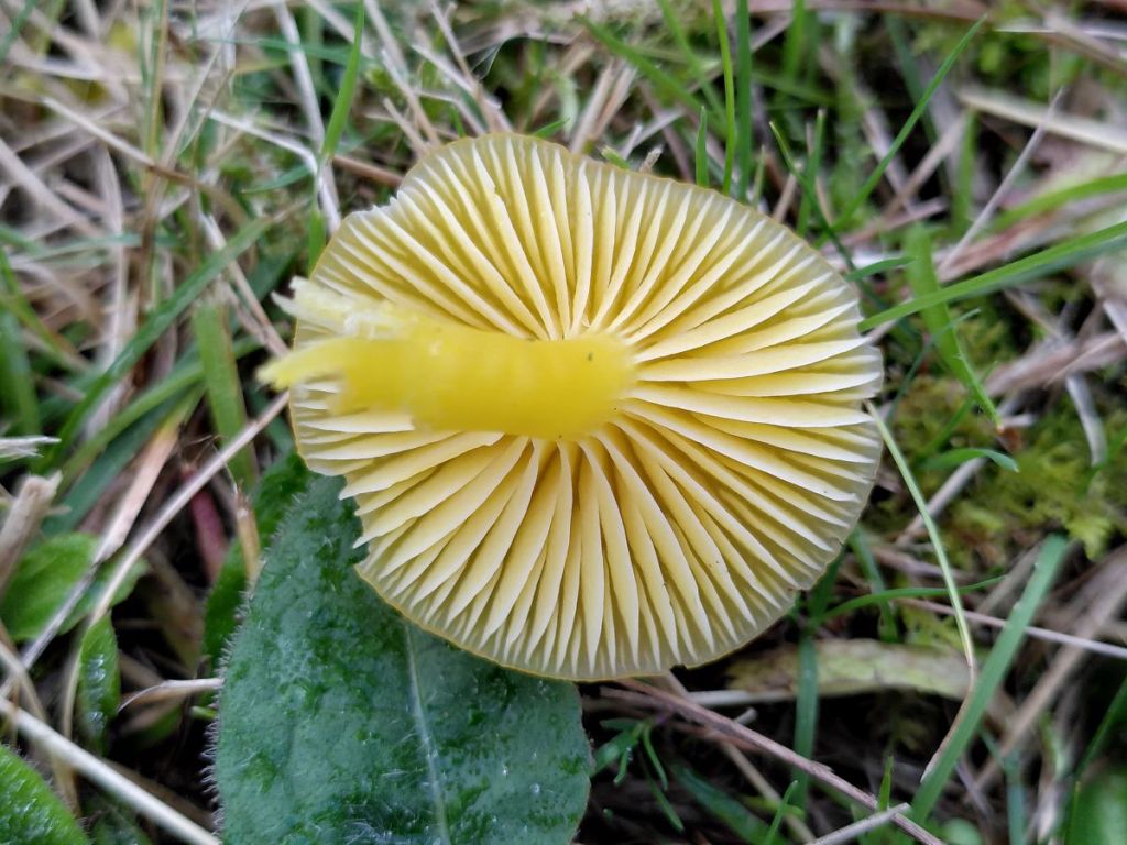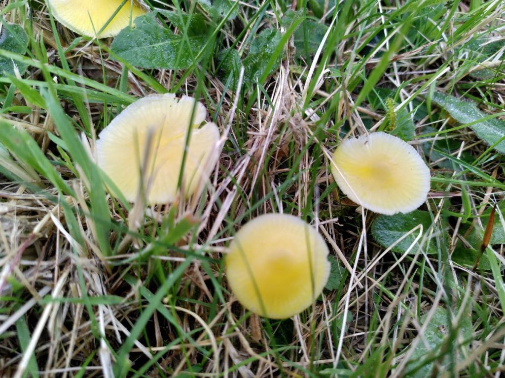 I don’t have an identification yet for this gorgeous waxcap and the closest I can guess is a colour variation of parrot waxcap (Gliophorus psittacinus).