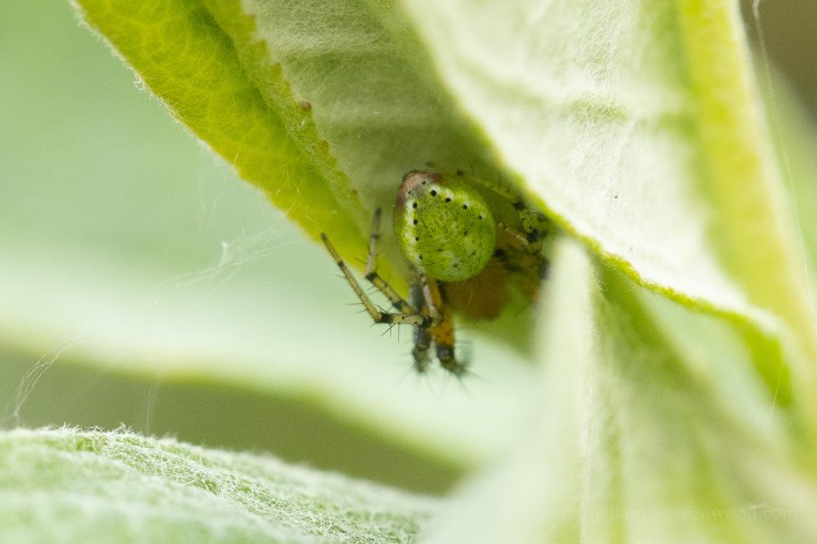 I’ve covered spiders (well, one) a lot in the past couple of weeks. I found a couple of spiders in the London garden with this one in the process of feeding on what appears to be a former caterpillar.
