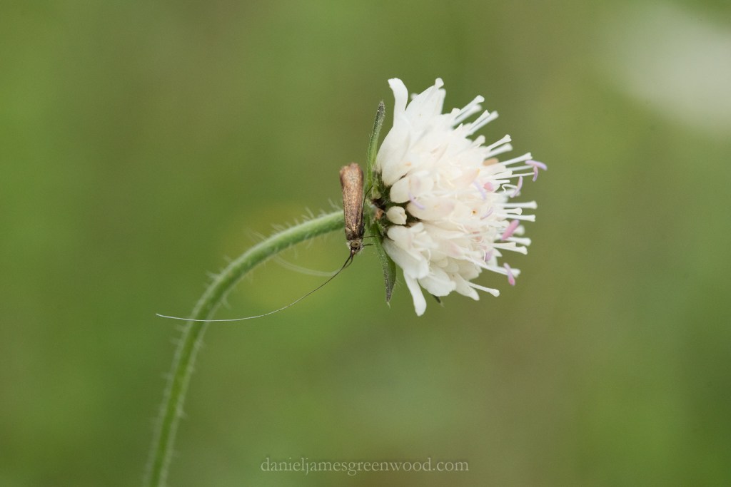 It was very easy to miss this long-horn moth, having attached itself to the sepals of this scabious flower. These are day-flying moths, which include some very beautiful species.
