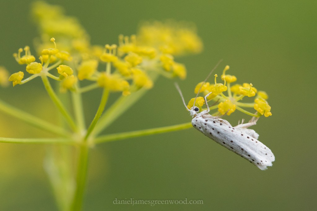 An ermine moth was nectaring on this umbellifer. They look like dalmatians.