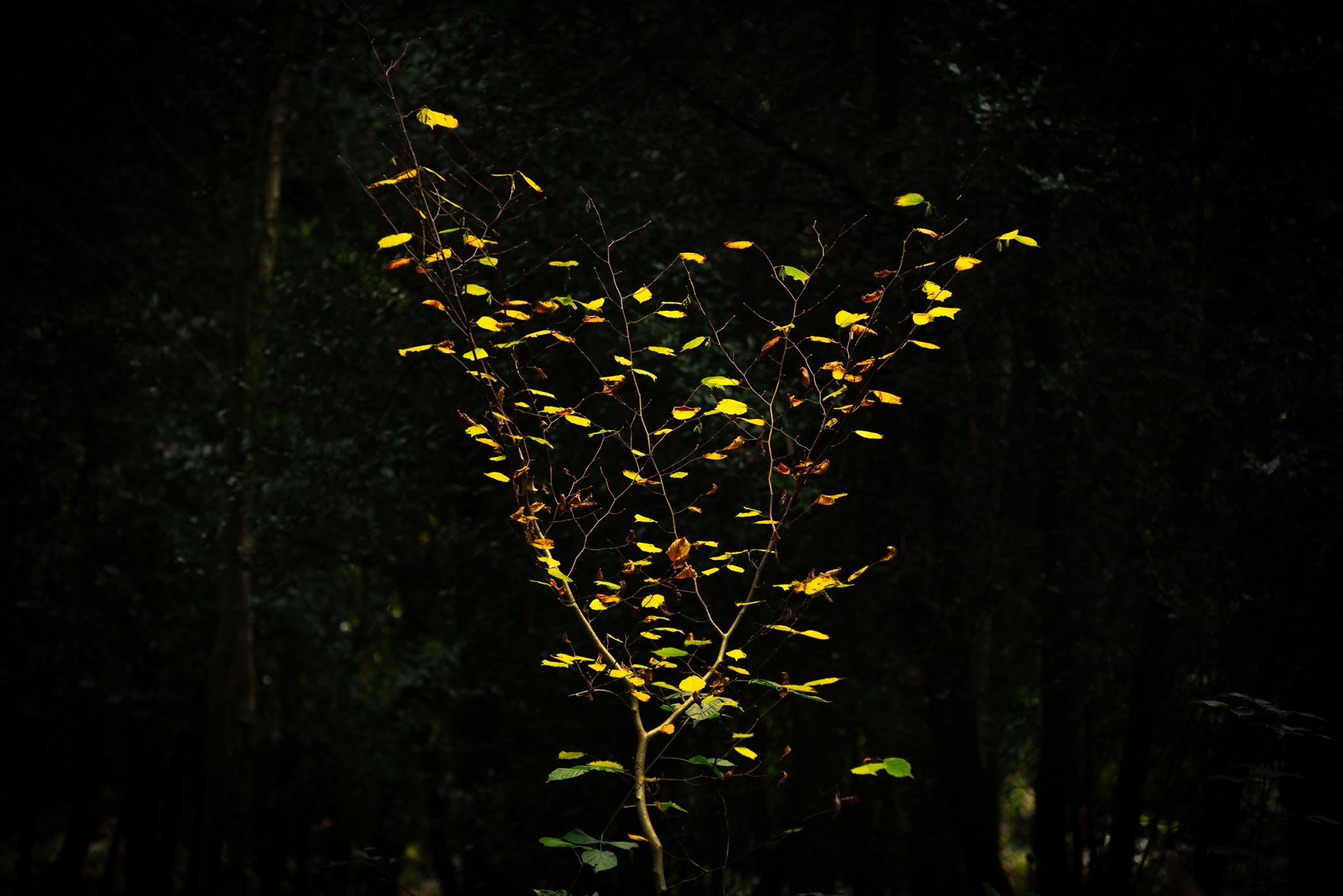 Jays pass almost every few seconds, back and forth to stash acorns. They are in the process of ‘scatter-hoarding’, the act of burying acorns in places that may well one day grow into the new oak trees of this landscape. These are birds in an autumn-pique. Beyond them buzzards soar but the wind deters the smaller species. In the grasslands clouded yellow butterflies feed on knapweeds and dandelions, red admirals bolt from the dark plantations. We find a single aspen, its trunk crooked, whipped north by decades of strong winds. Half its canopy shows red in its leaves.