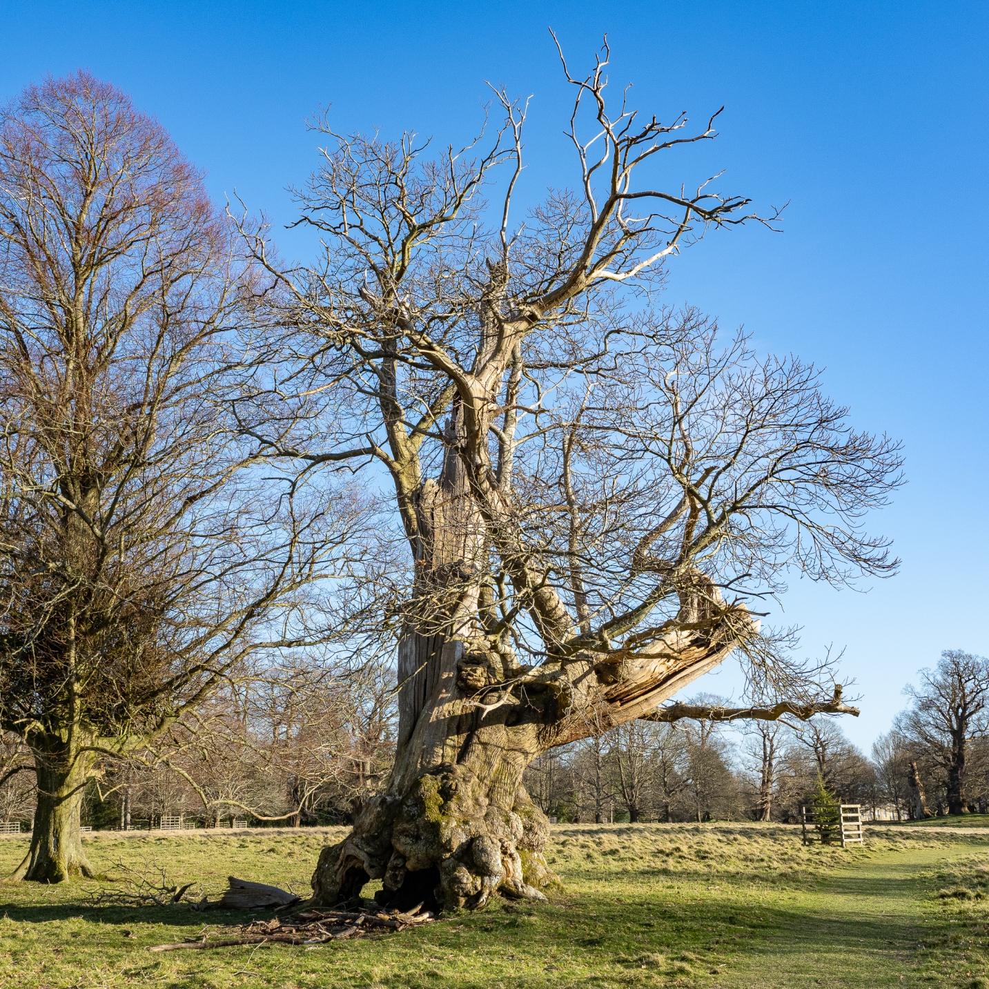 The wood pasture as it looks today was created and ‘refined’ thousands of years ago by people clearing woodland – likely of oak, ash, hornbeam and hazel – to allow their domesticated cattle and goats and Mesopotamian sheep to graze. At least that is the common understanding, for could the presence of large, roaming groups of wild horses, bison, elk and other herbivores have meant a landscape more open than the idea of coast-to-coast closed canopy woodland? Compared with today’s measure, the deforestation work of our species was sustainable deforestation due to the population sparsity, moving a possibly more dense wildwood to something more open in places.