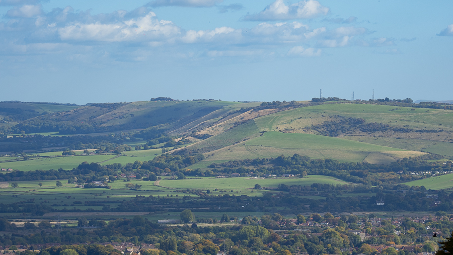 A last look across the Findon Valley, west into the Downs. The ramparts of the hillfort are in the image’s foreground.