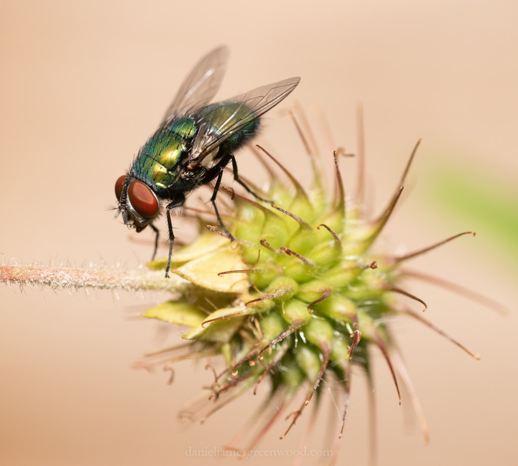 They also can be very willing subjects. This greenbottle is perched on the seed-head of wood avens, which anyone with a cat will know well.