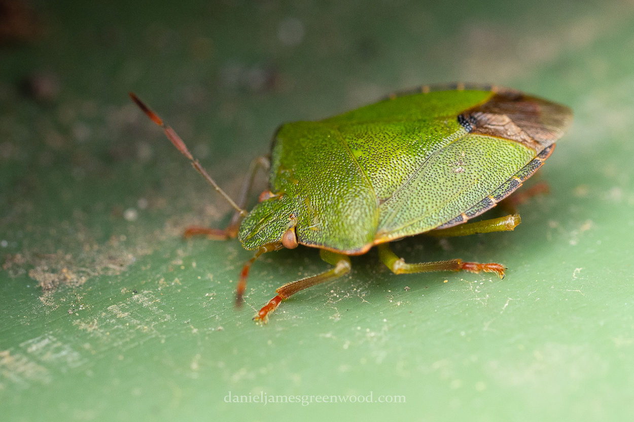 On my recycling bin I spotted this green shield bug, a fairly common sight in my garden. They are lovely insects but are also known as stinkbugs in North America because of their pungent scent that is deployed when they’re in trouble.