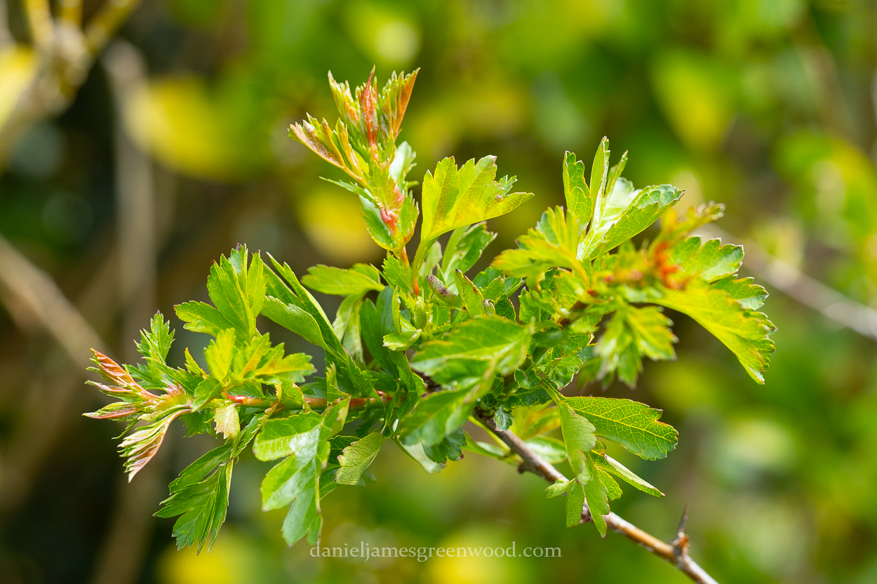 The hawthorn was in full leaf. I have since coppiced this hawthorn sapling to allow it to form more of a hedge, compared to the spindly tree it was forming.